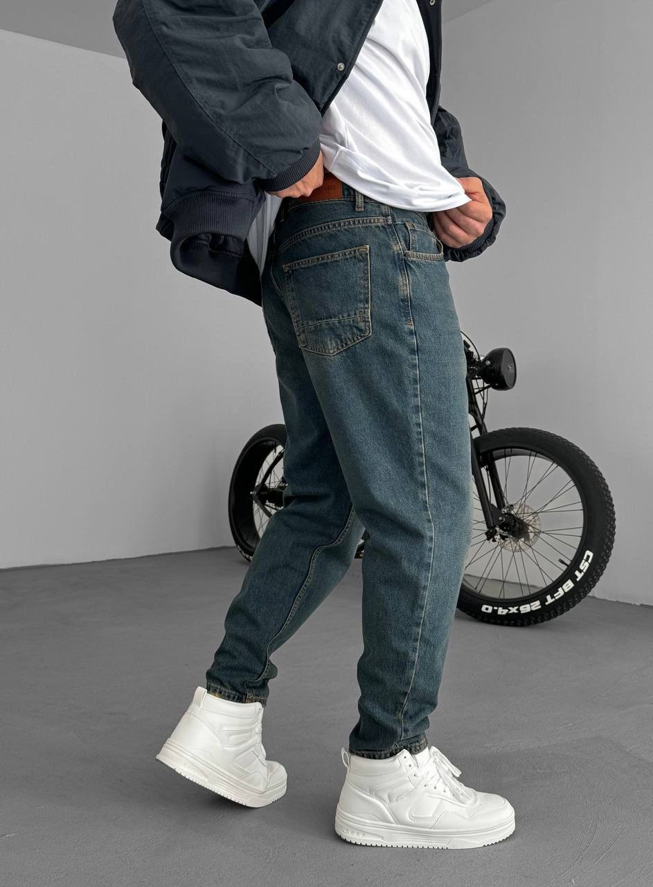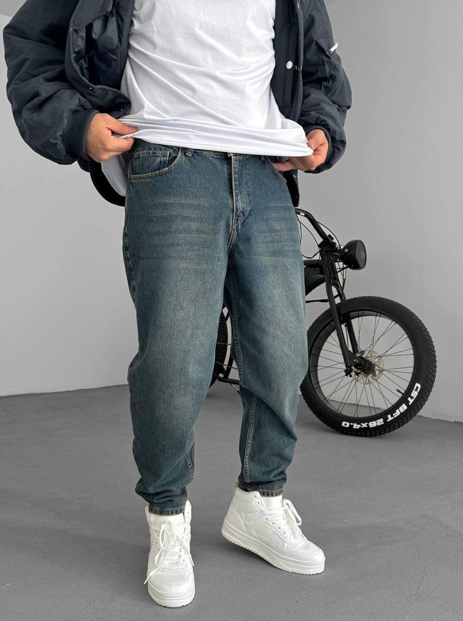 Мужские Свободные Джинсы Бананы Синие с Грязным Эффектом