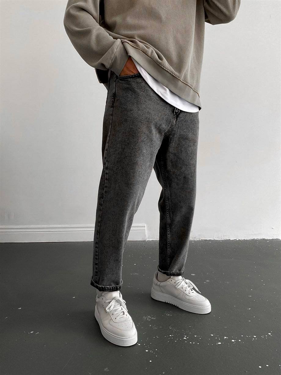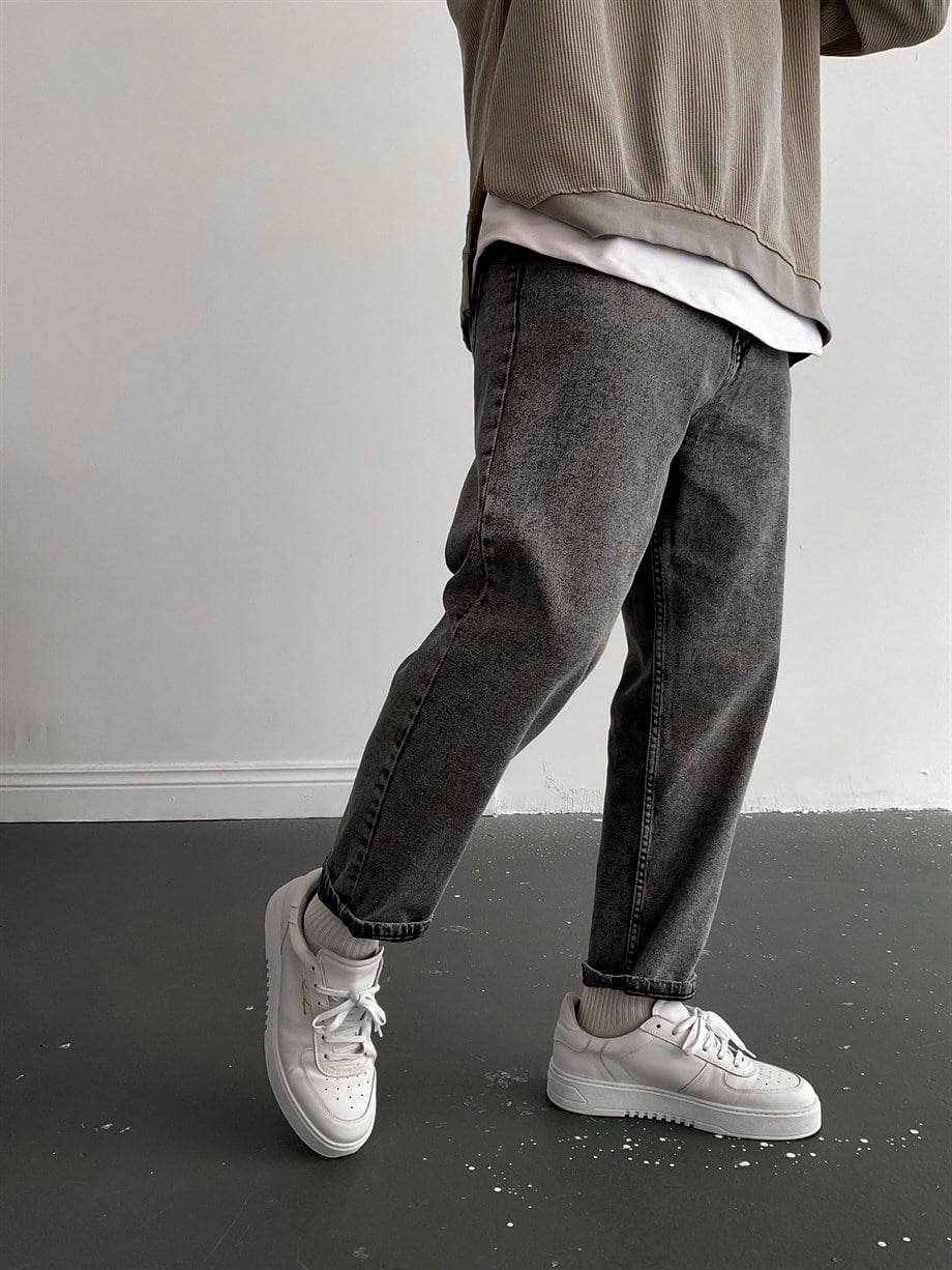 Мужские Свободные Темно-Серые Джинсы МОМ Варенки