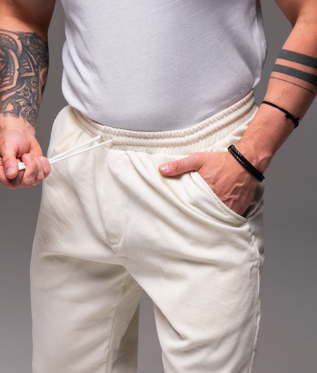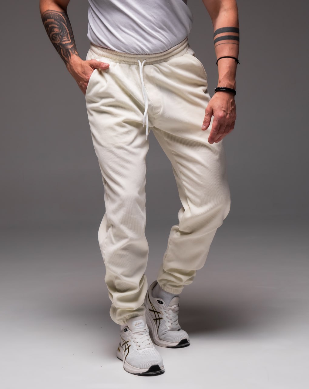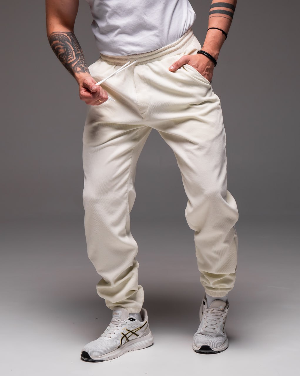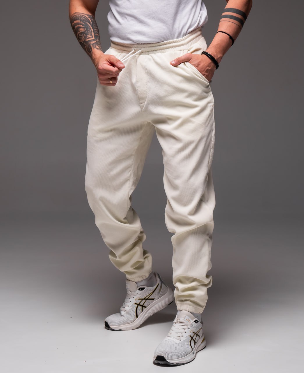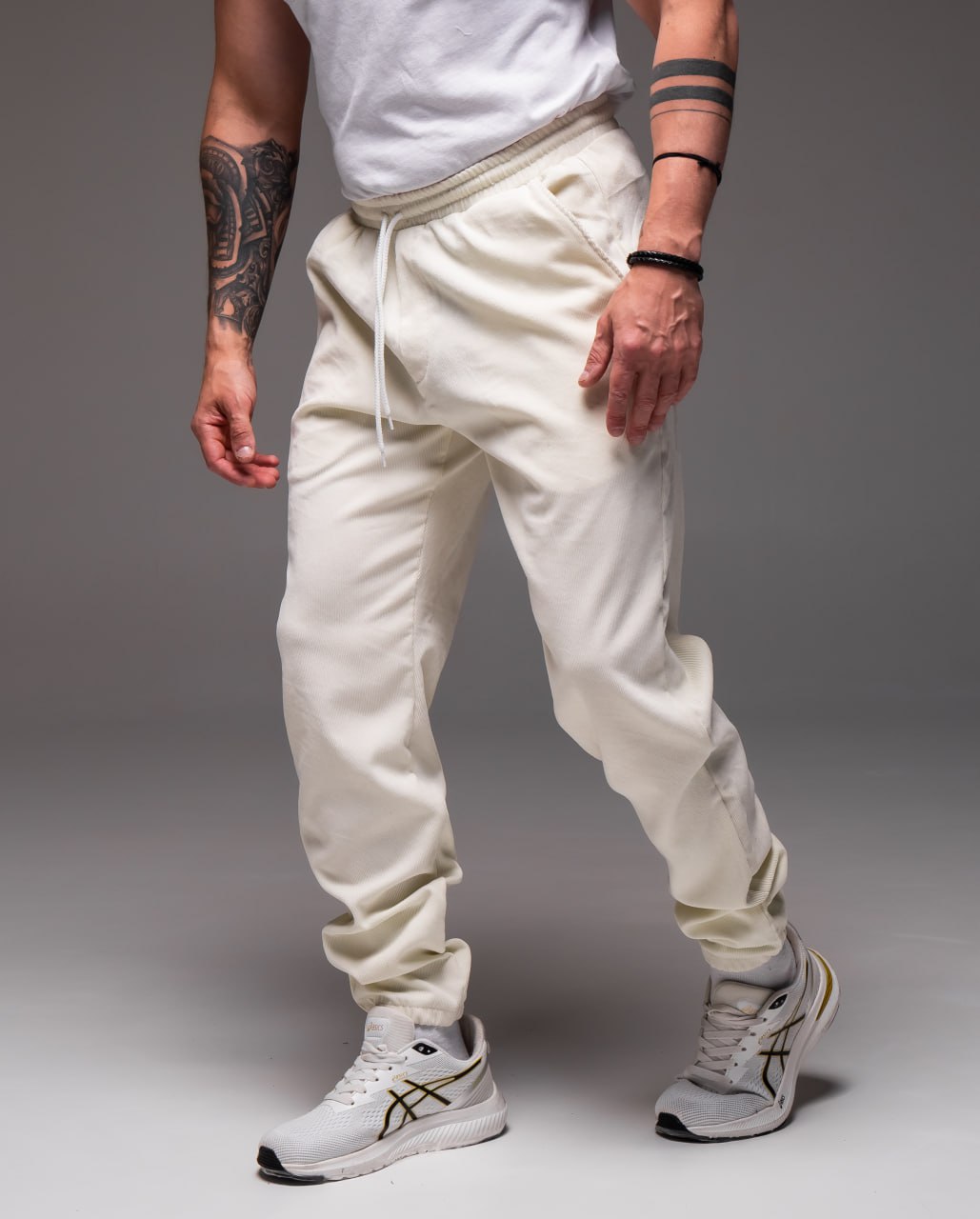 Мужские Молочные Вельветовые Штаны Джоггеры на Резинках Внизу