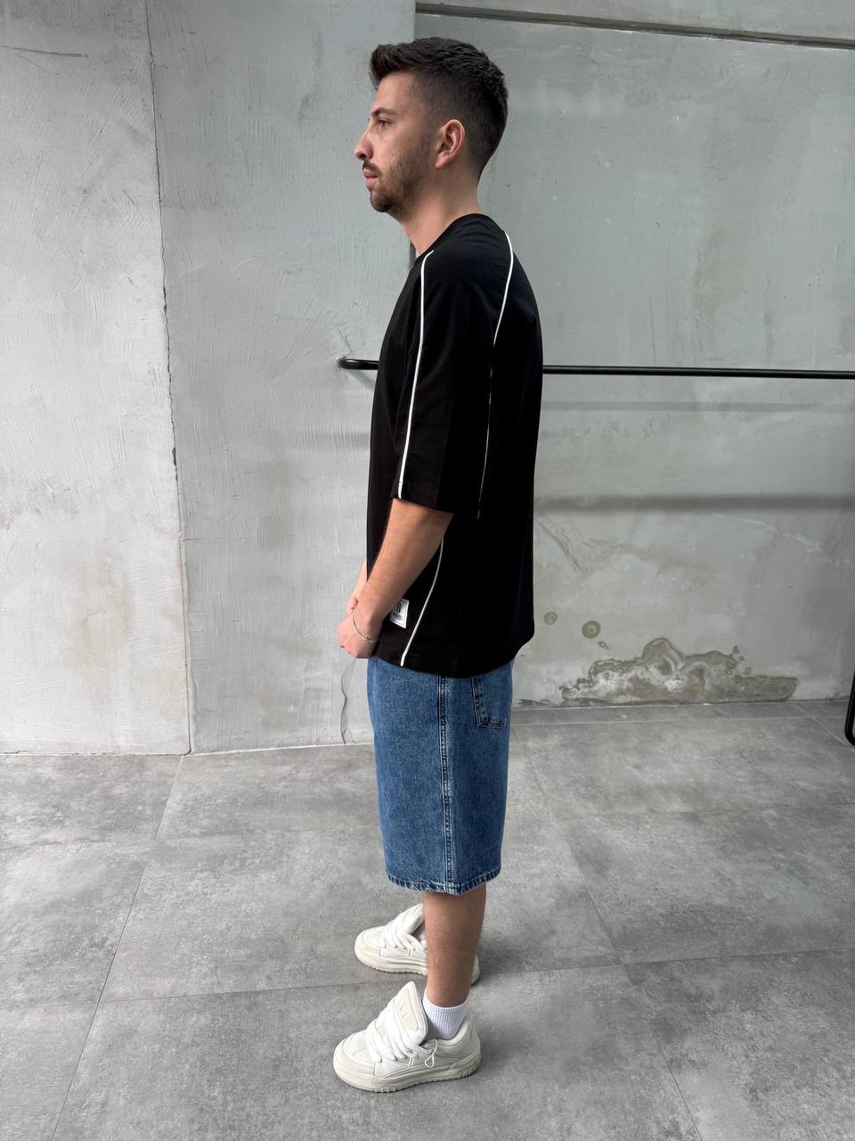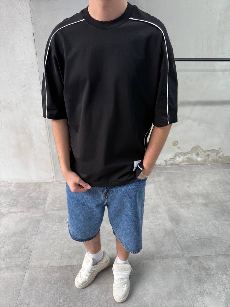 Мужская Базовая Черная Футболка Хлопок – Объемная Оверсайз с Кантом