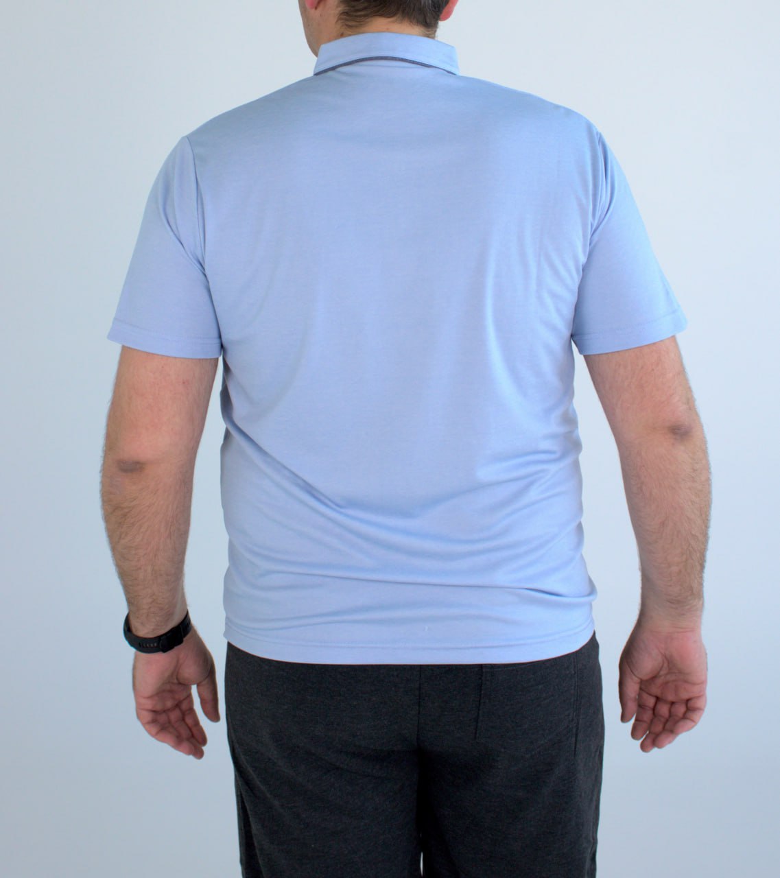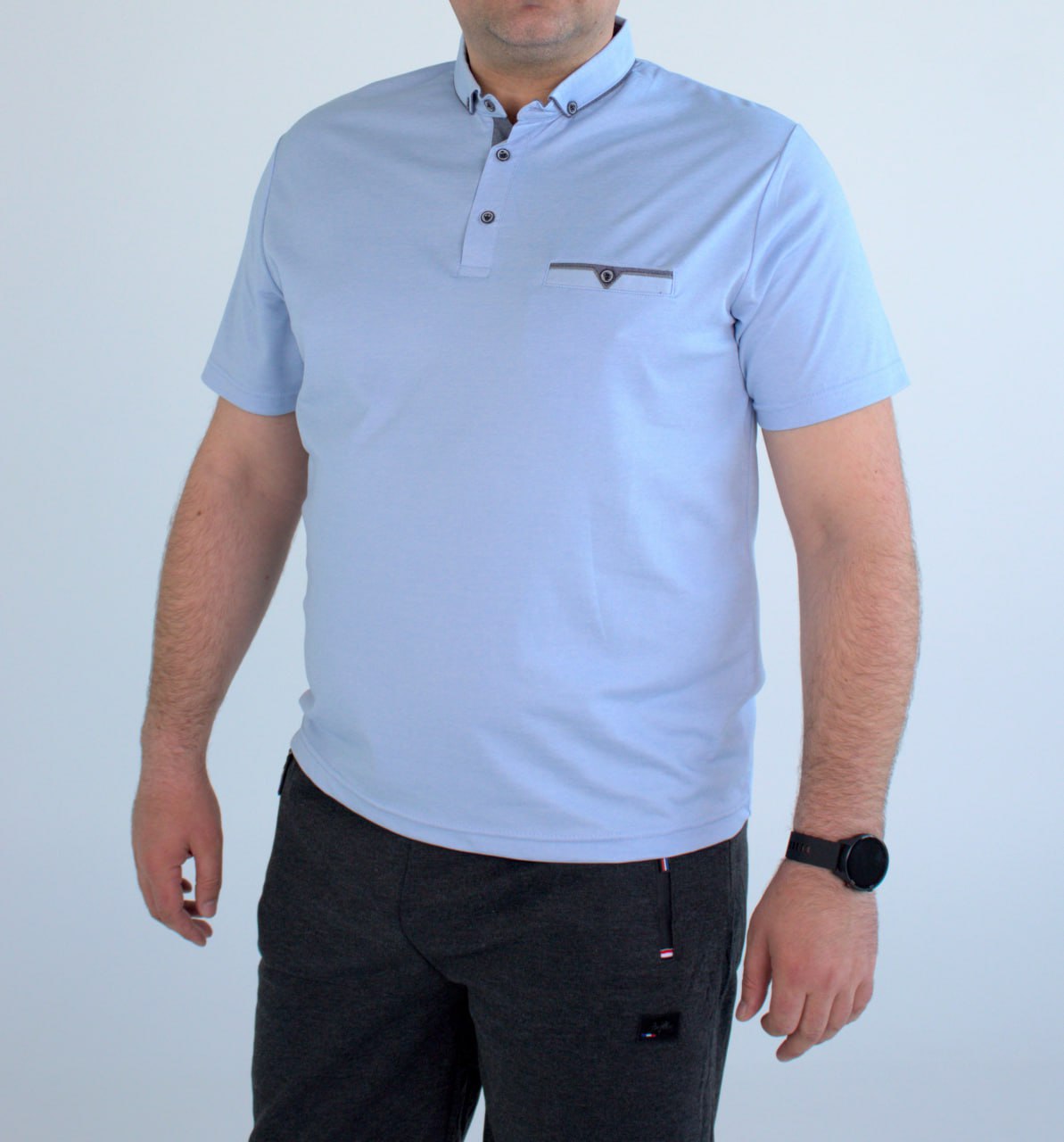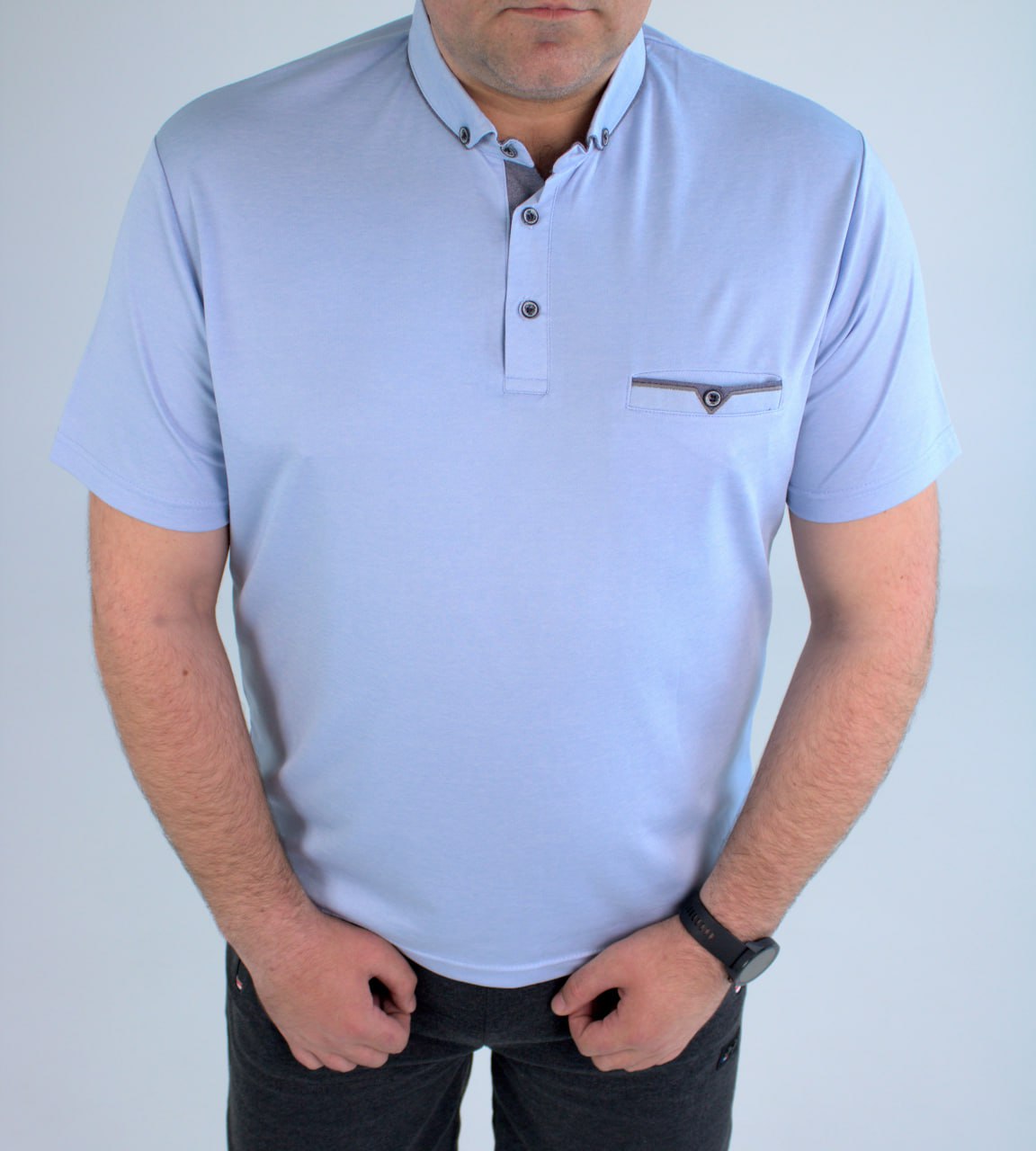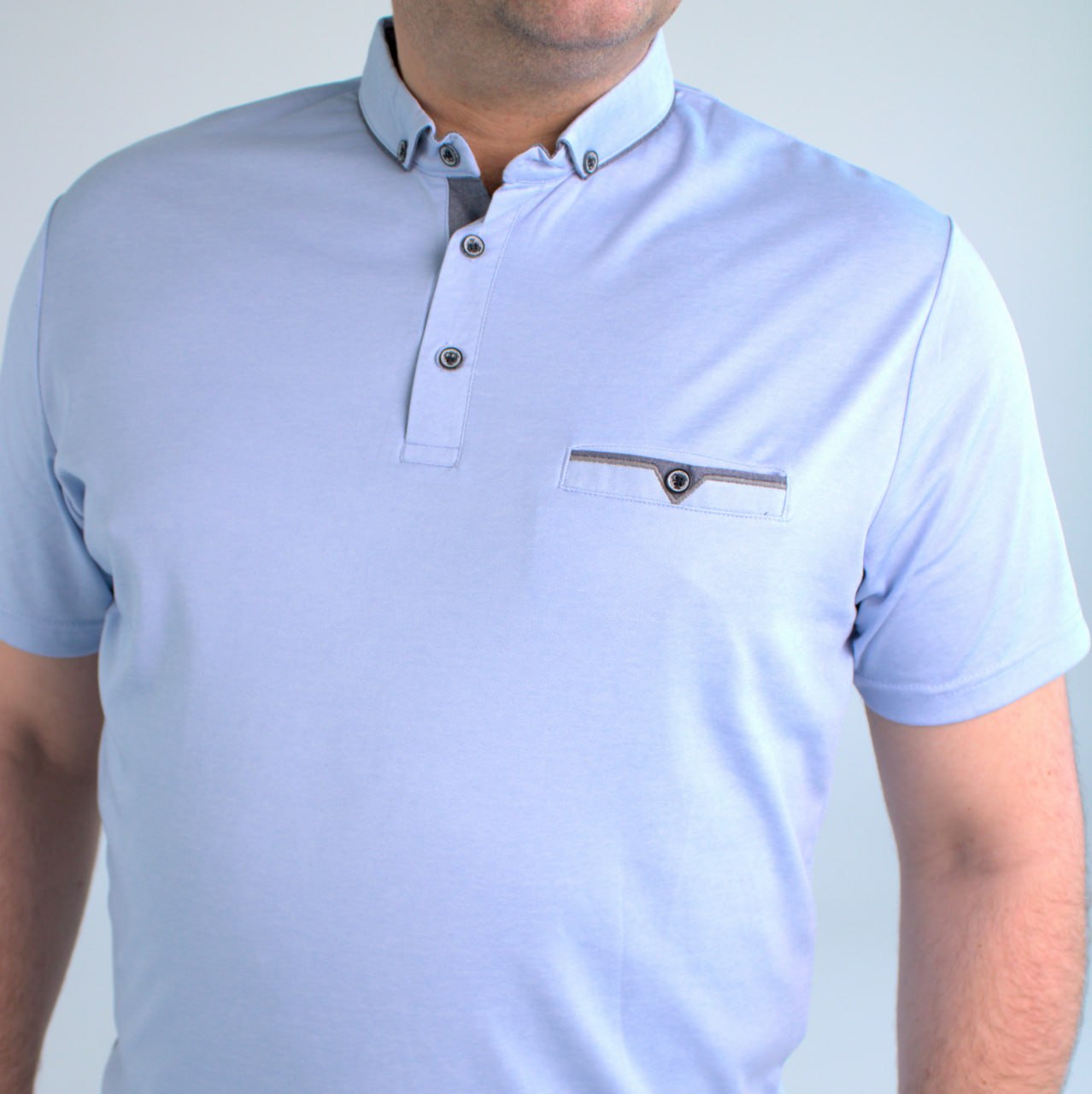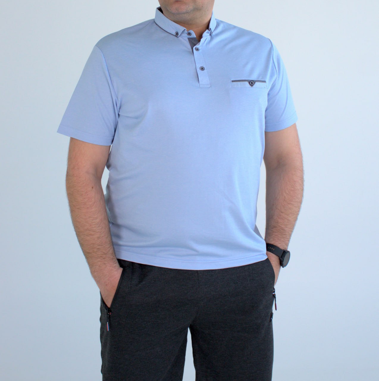 Мужская Базовая Голубая Футболка с Воротником Поло на Пуговицах (Большие Размеры)