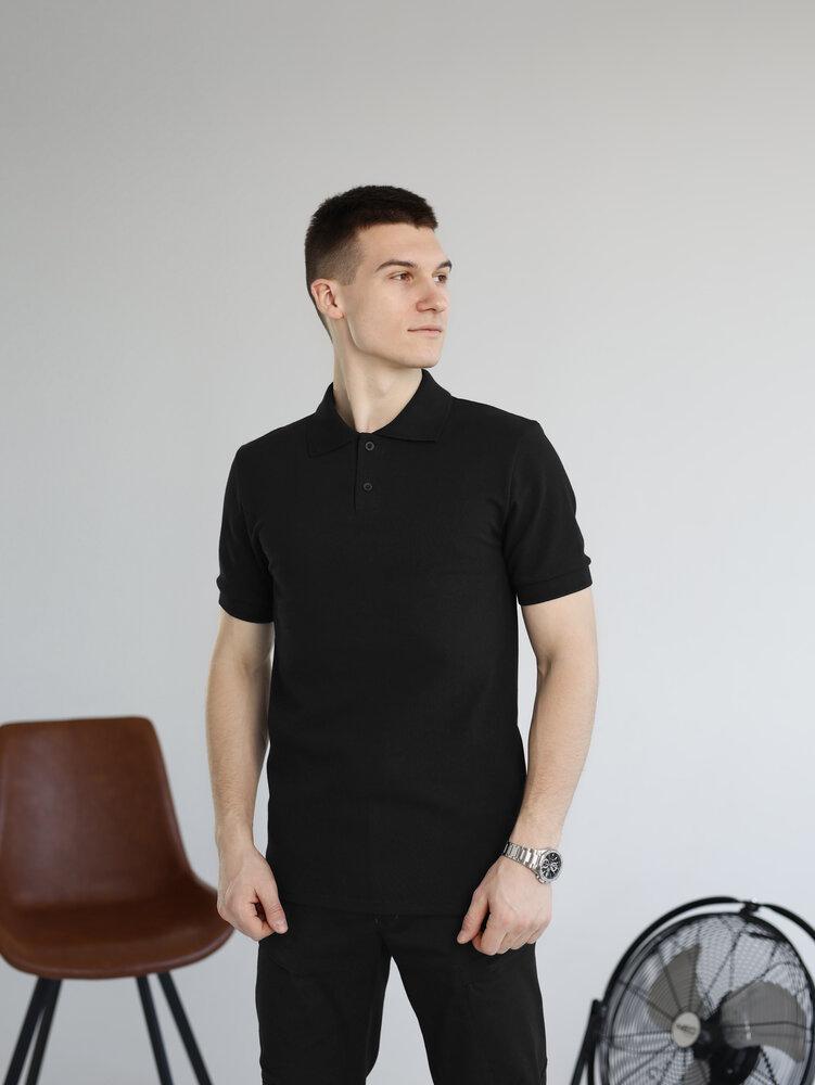 Мужская Базовая Хлопковая Черная Футболка Поло с Воротником