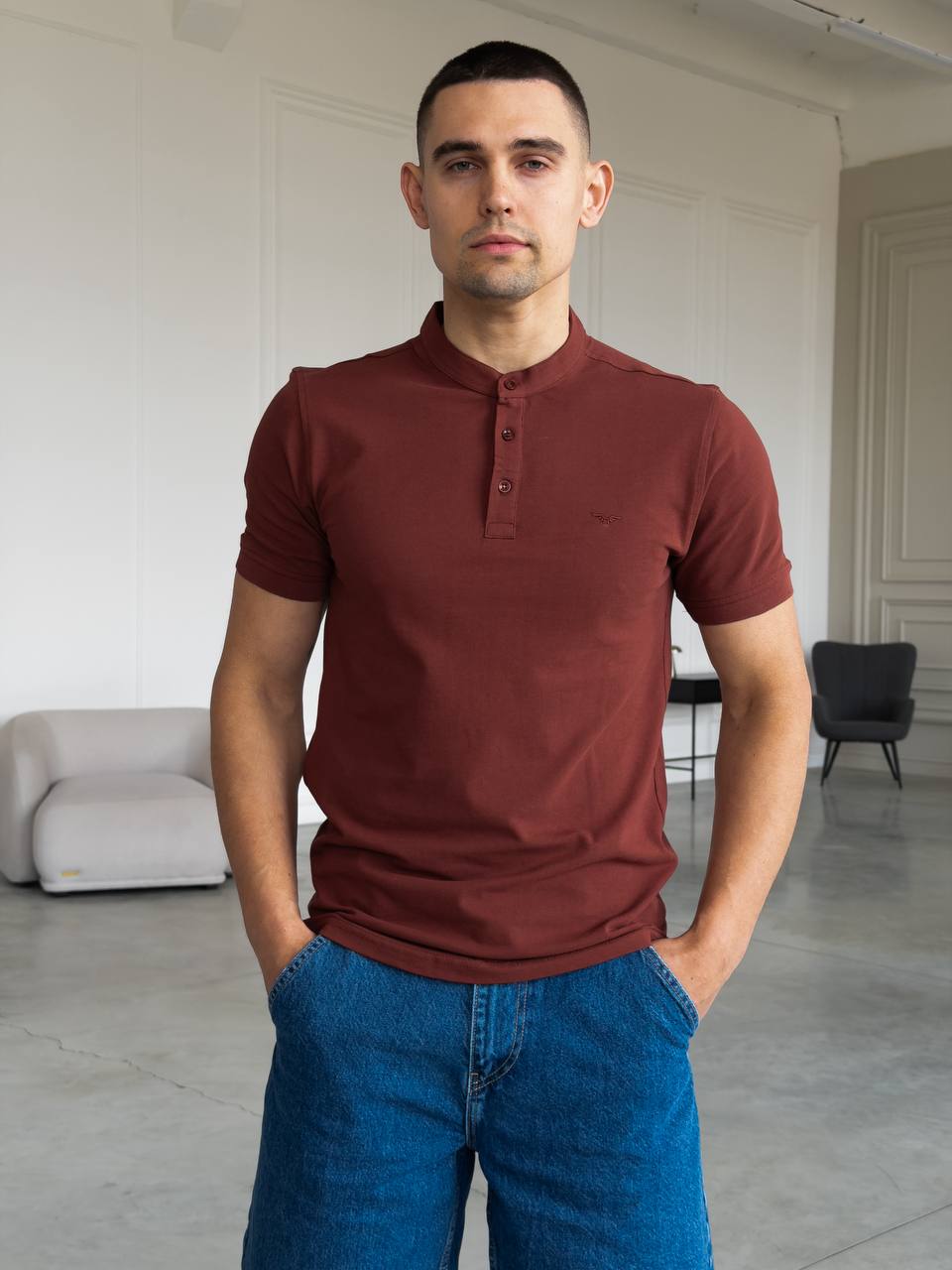 Мужская Базовая Хлопковая Терракотовая Футболка с Пуговицами