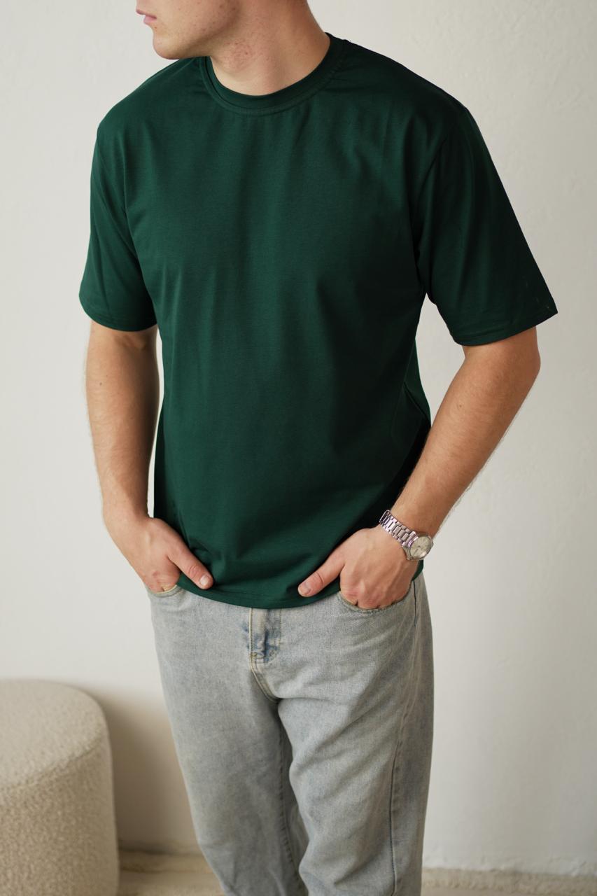 Мужская Базовая Хлопковая Зеленая Футболка Объемного Кроя