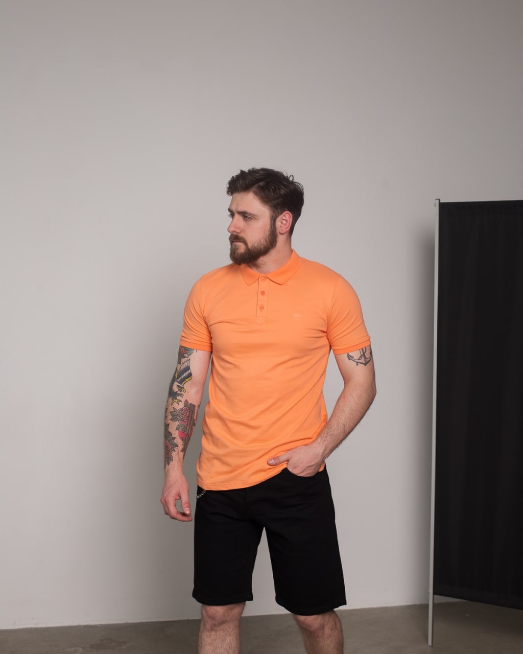 Мужская Базовая Оранжевая Футболка Поло – Коттоновая с Воротником и Пуговицами