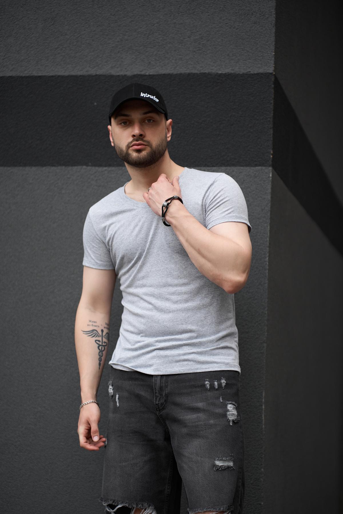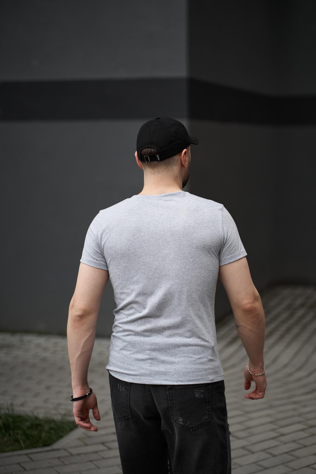 Мужская Базовая Серая Футболка Прямого Кроя с Треугольным Вырезом