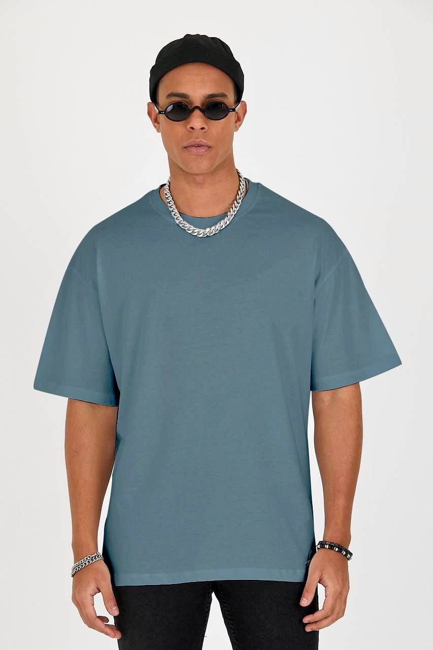 Мужская Базовая Темно-Голубая Футболка Оверсайз Коттон