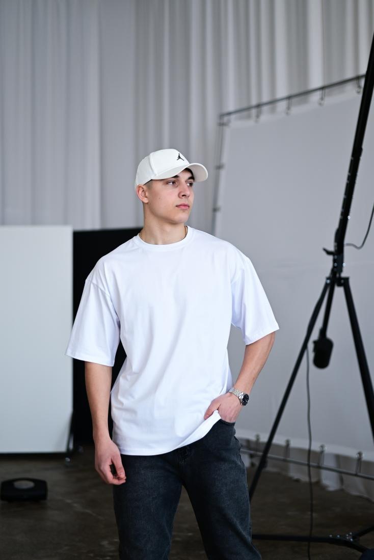 Мужская Белая Футболка Оверсайз Хлопок с Принтом Мишка на Спине