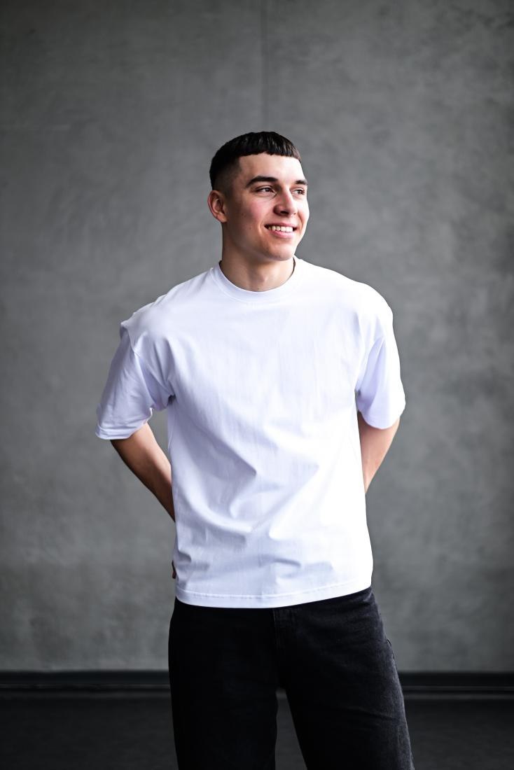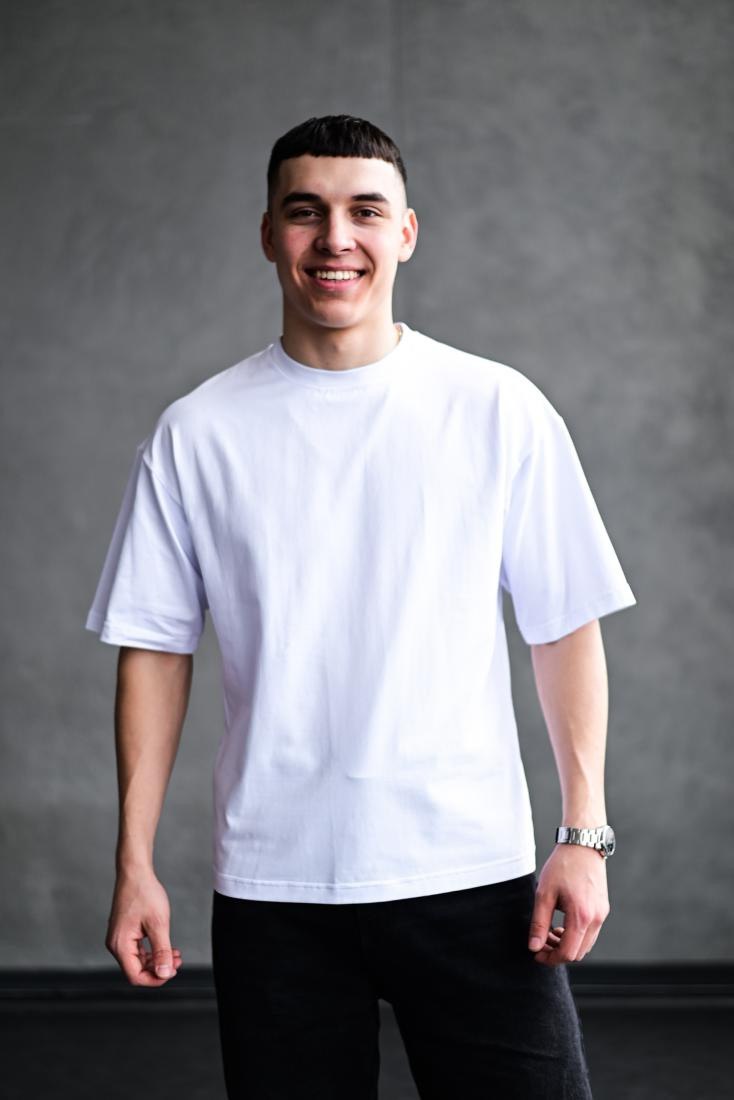 Мужская Белая Футболка Оверсайз Хлопок с Принтом Мона Лиза на Спине