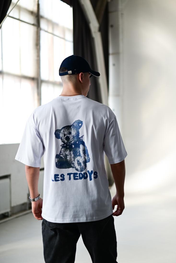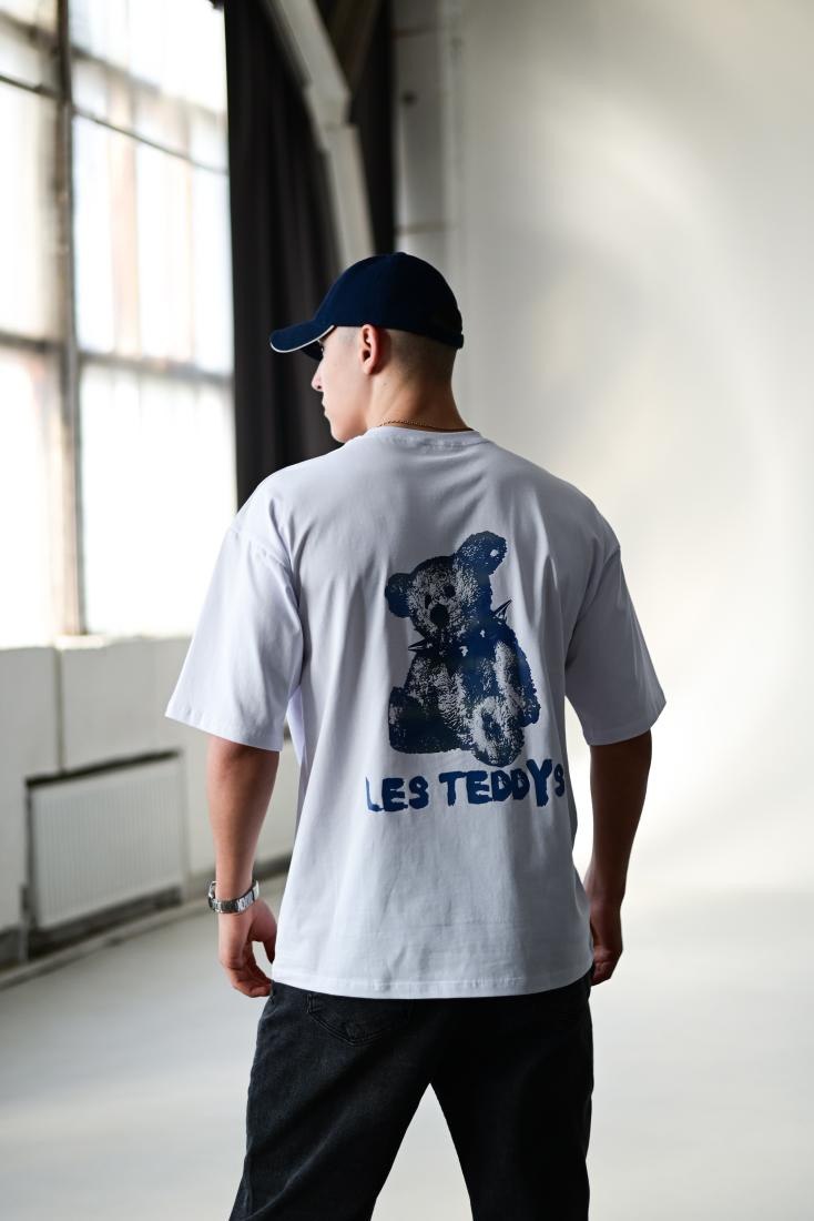 Мужская Белая Футболка Оверсайз Хлопок с Принтом Teddy на Спине