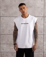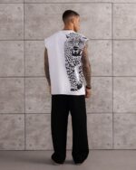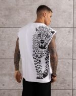 Мужская Белая Футболка Свободного Кроя без Рукавов с Гепардом