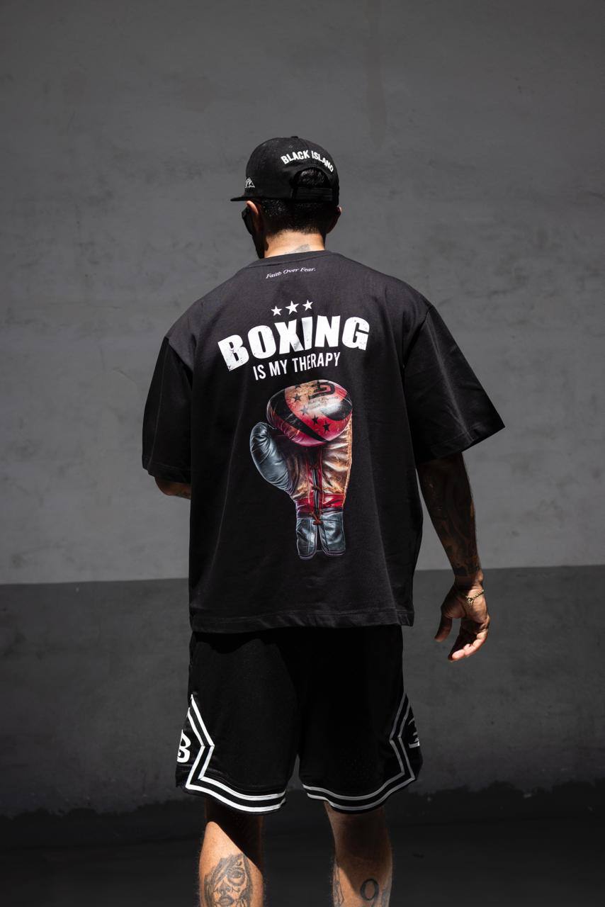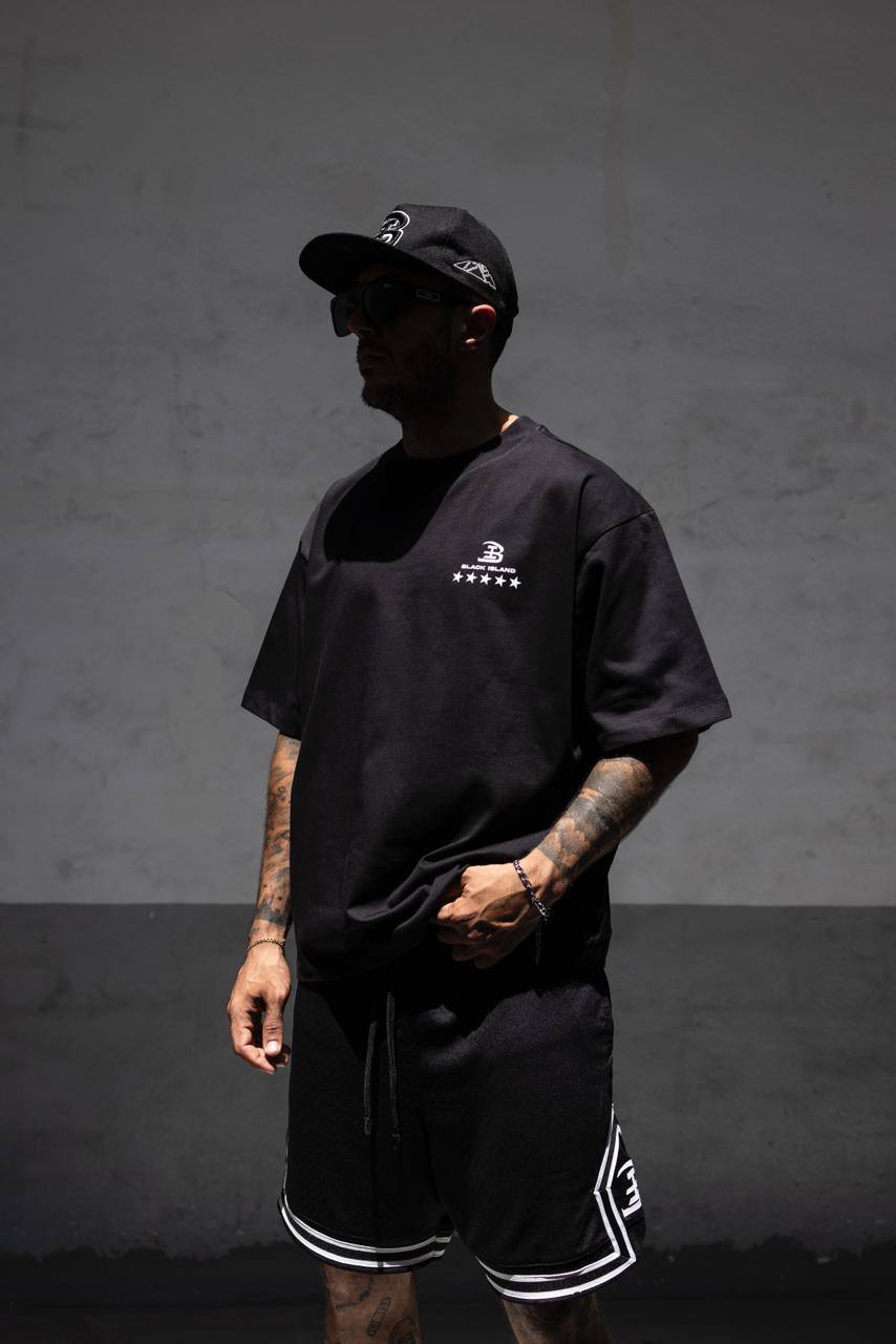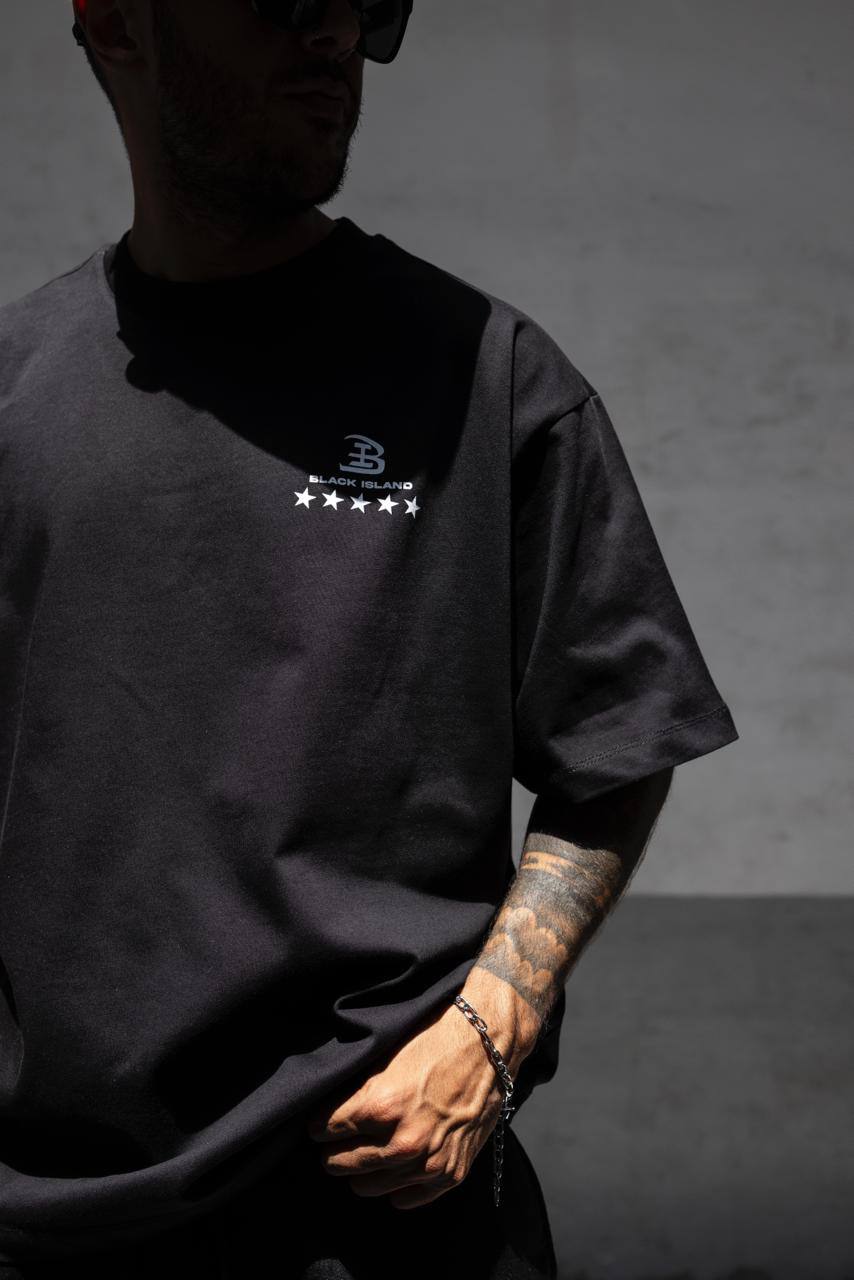 Мужская Черная Футболка Оверсайз – Хлопковая Объемная с Принтом на Спине