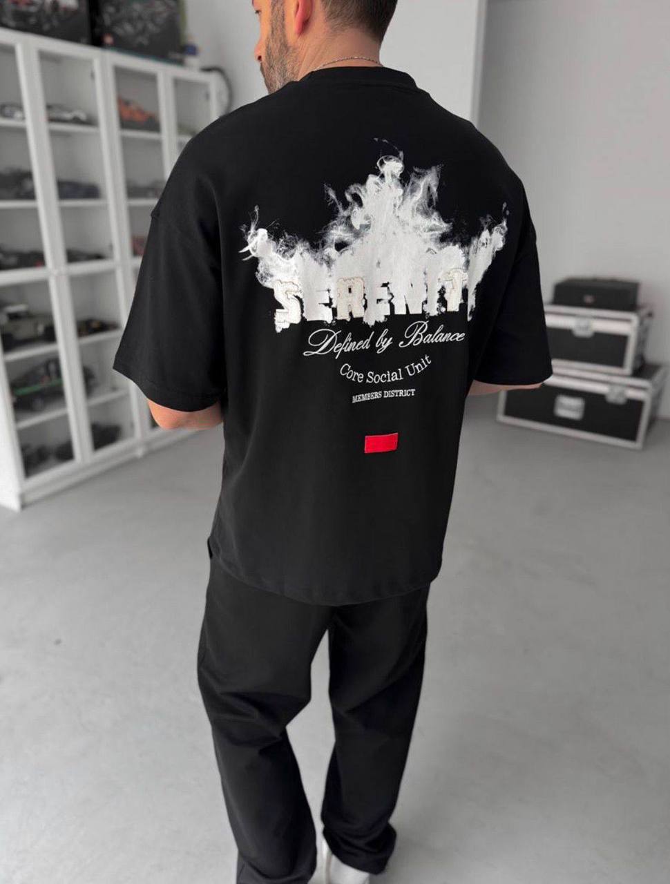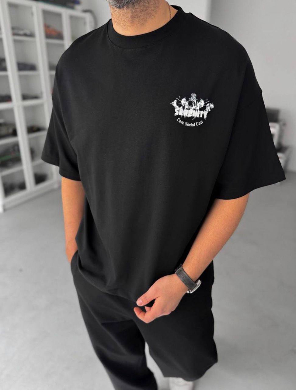 Мужская Черная Футболка Оверсайз – Хлопковая с Принтом на Спине