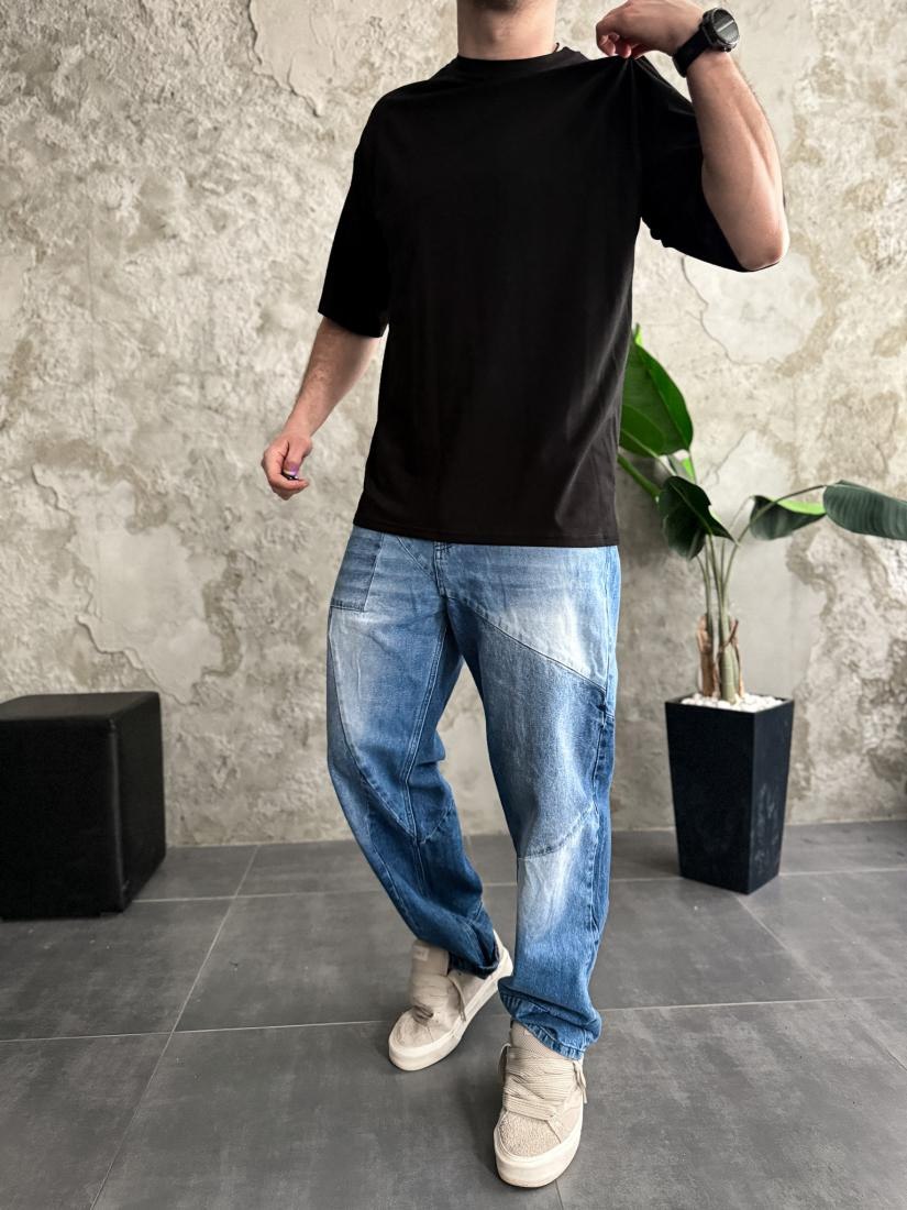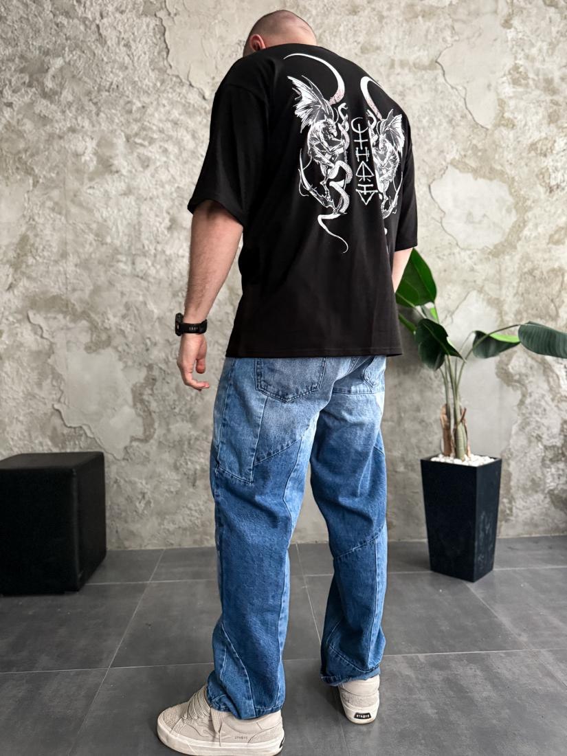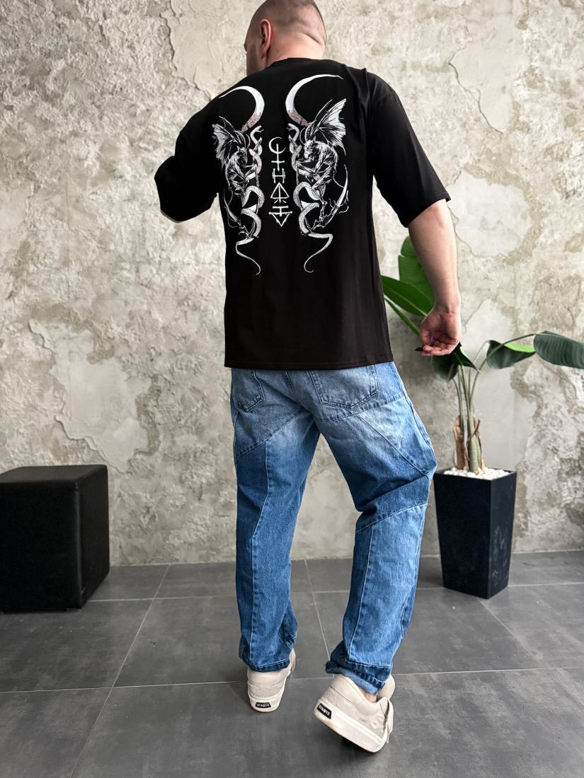Мужская Черная Футболка Оверсайз Хлопок с Принтом Гаргульи на Спине