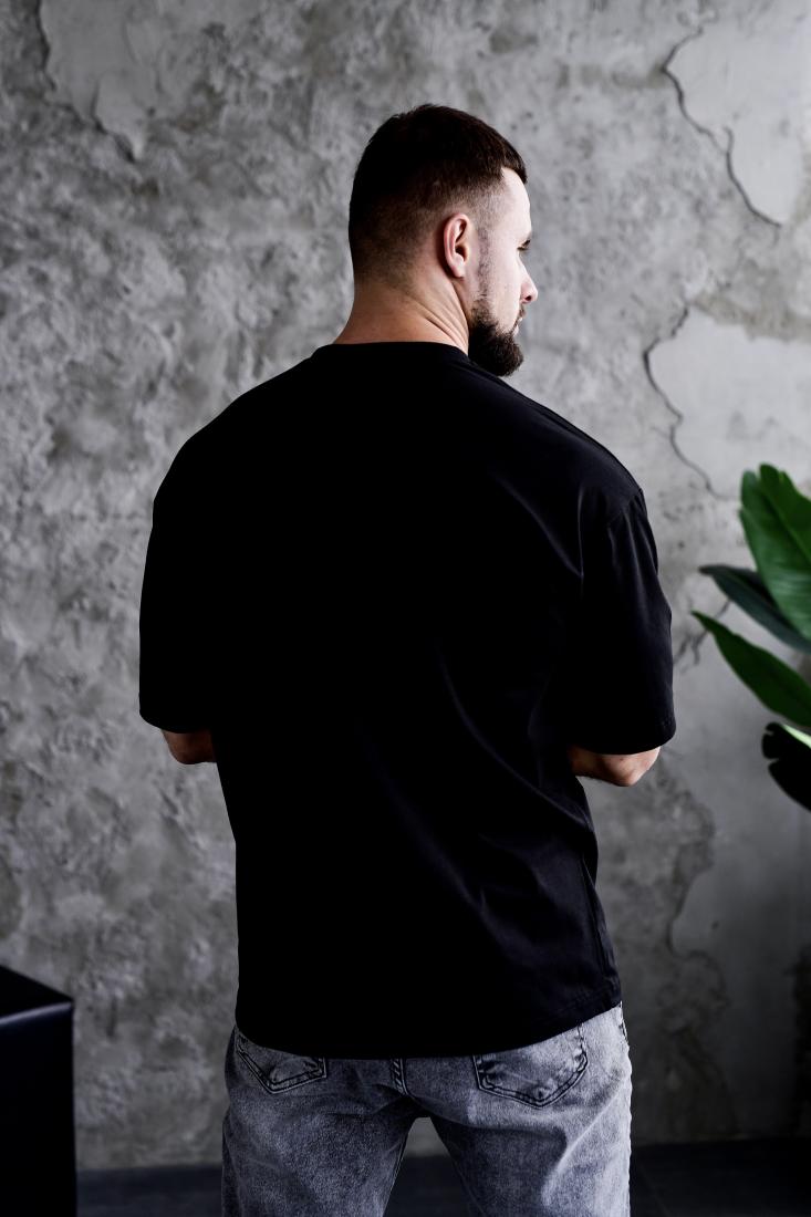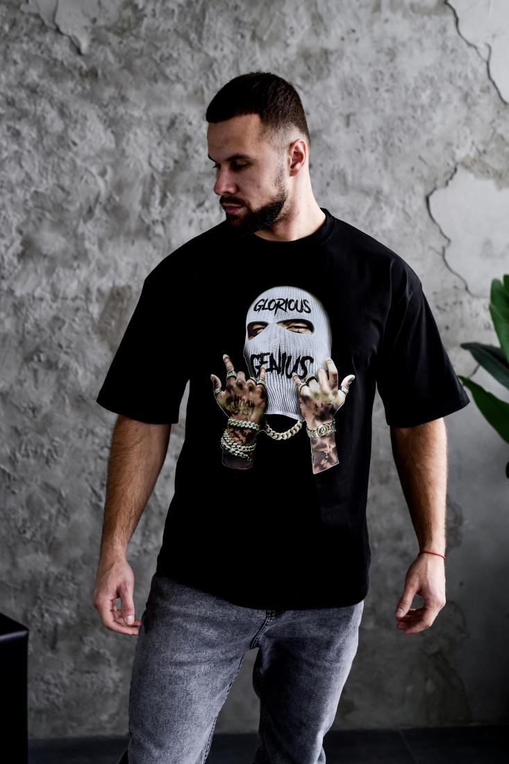 Мужская Черная Футболка Оверсайз Хлопок с Принтом Gloricus Genius на Спине
