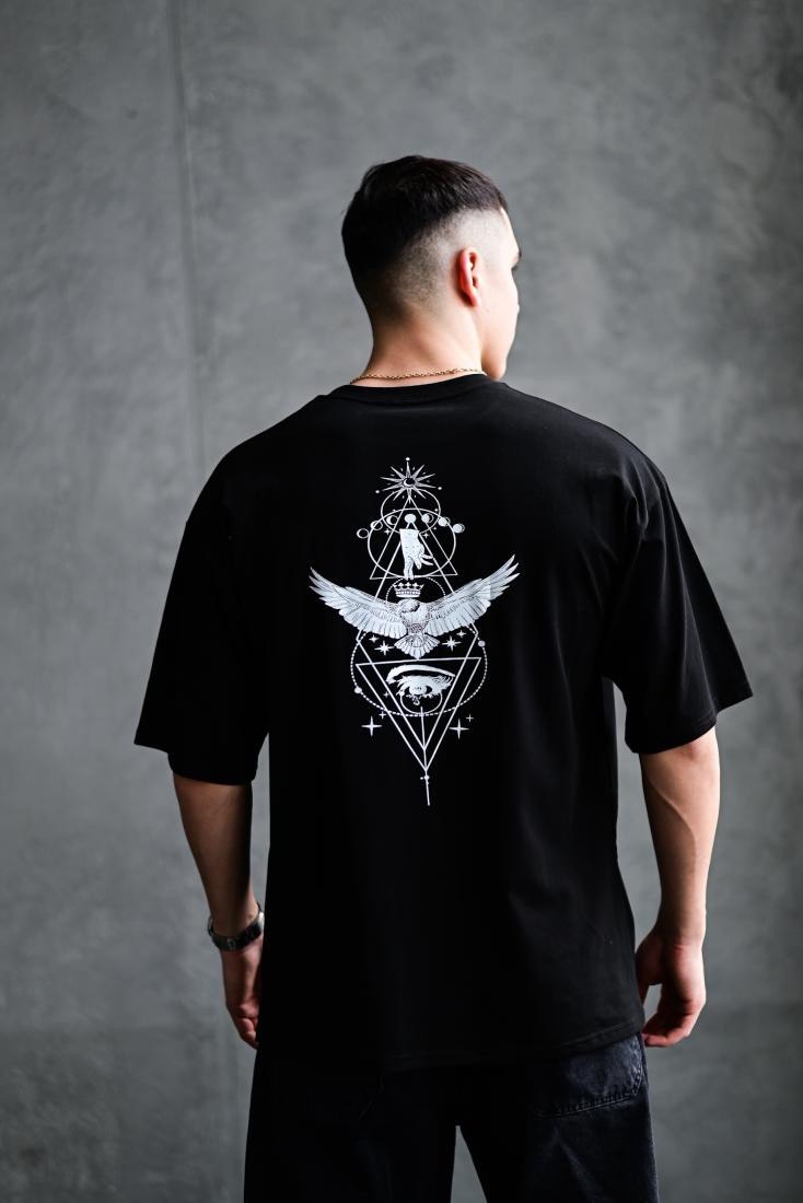 Мужская Черная Футболка Оверсайз Хлопок с Принтом Третий Глаз на Спине