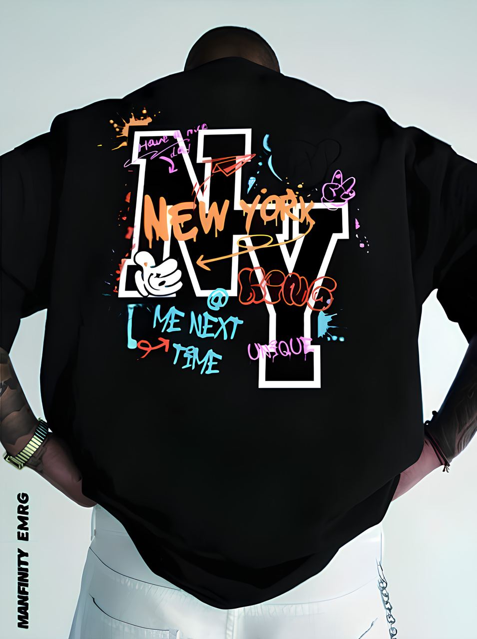 Мужская Черная Футболка Оверсайз – Объемная с Принтом Граффити “New York”