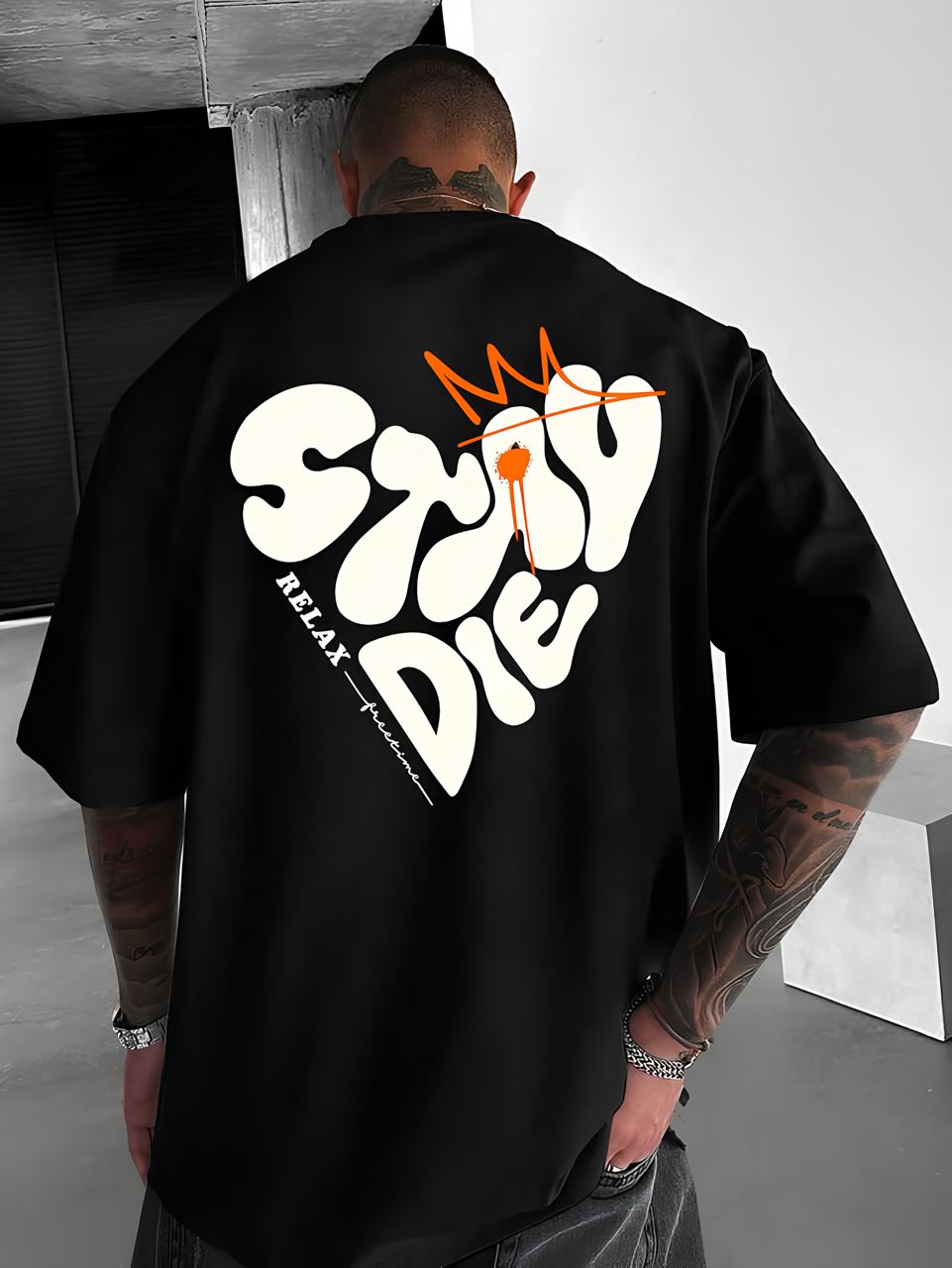 Мужская Черная Футболка Оверсайз – Объемная с Принтом “Stay Die”