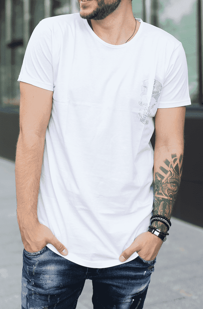 Мужская Футболка Оверсайз Белая – Удлиненная Свободного Кроя Хлопок Однотонная с Рисунком