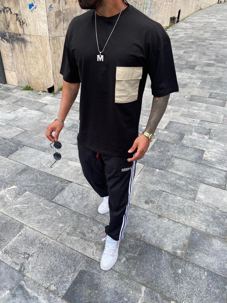 Мужская Футболка Оверсайз Черная Бежевая – Свободного Кроя Коттон