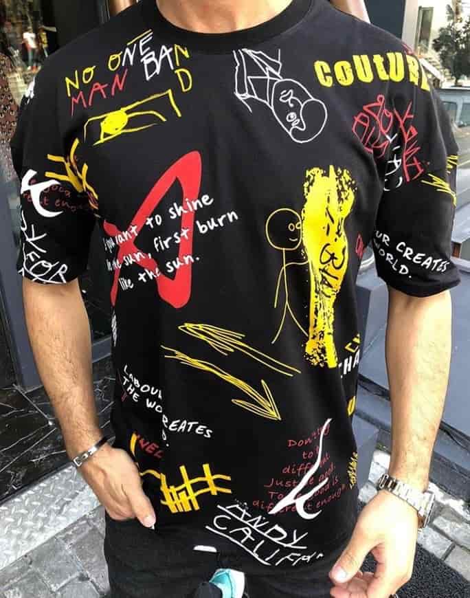 Мужская Футболка Оверсайз Черная – Свободного Кроя Коттон с Ярким Принтом