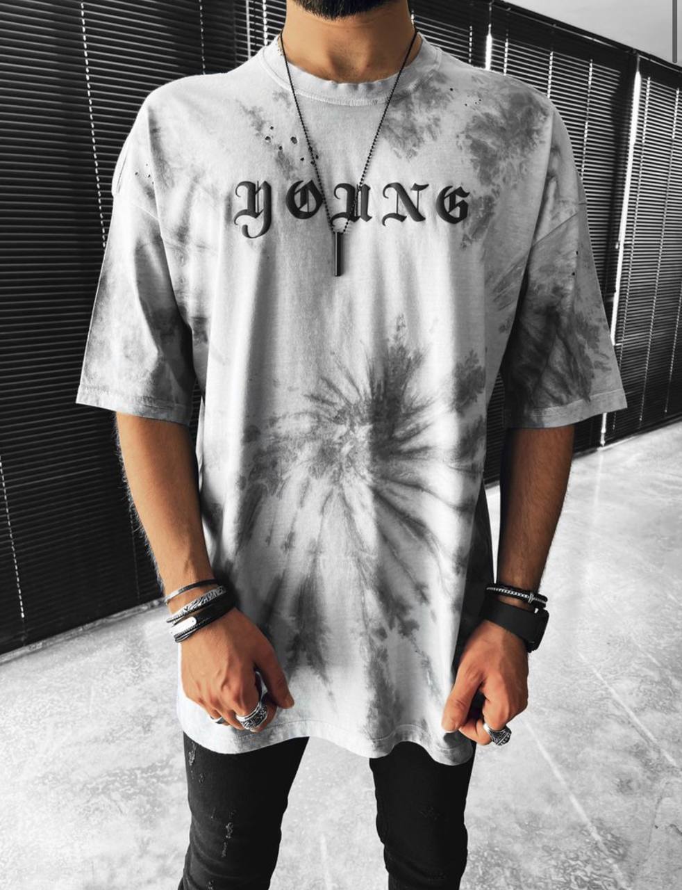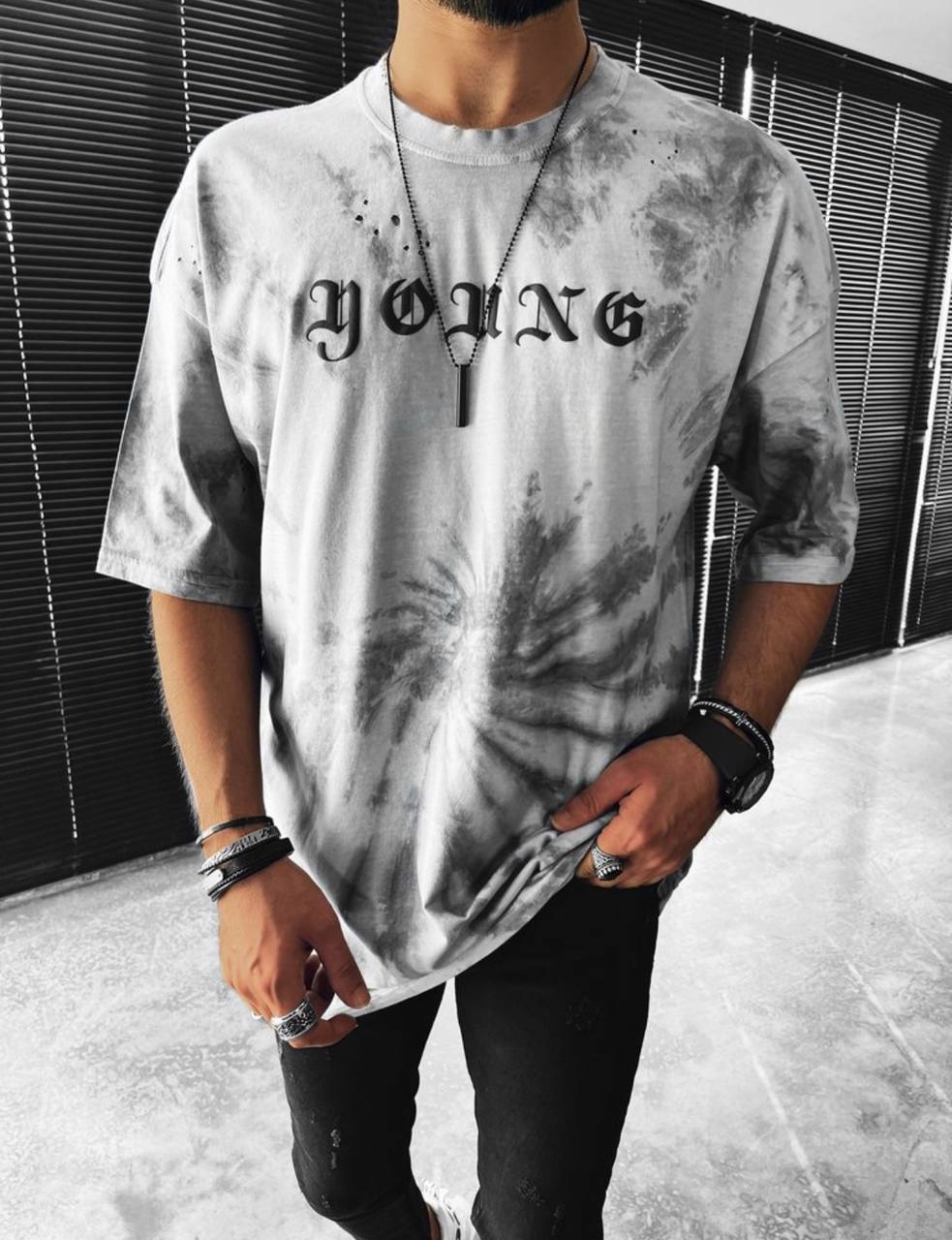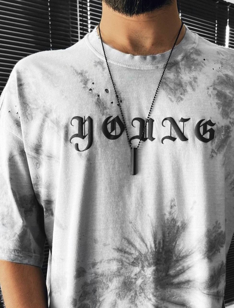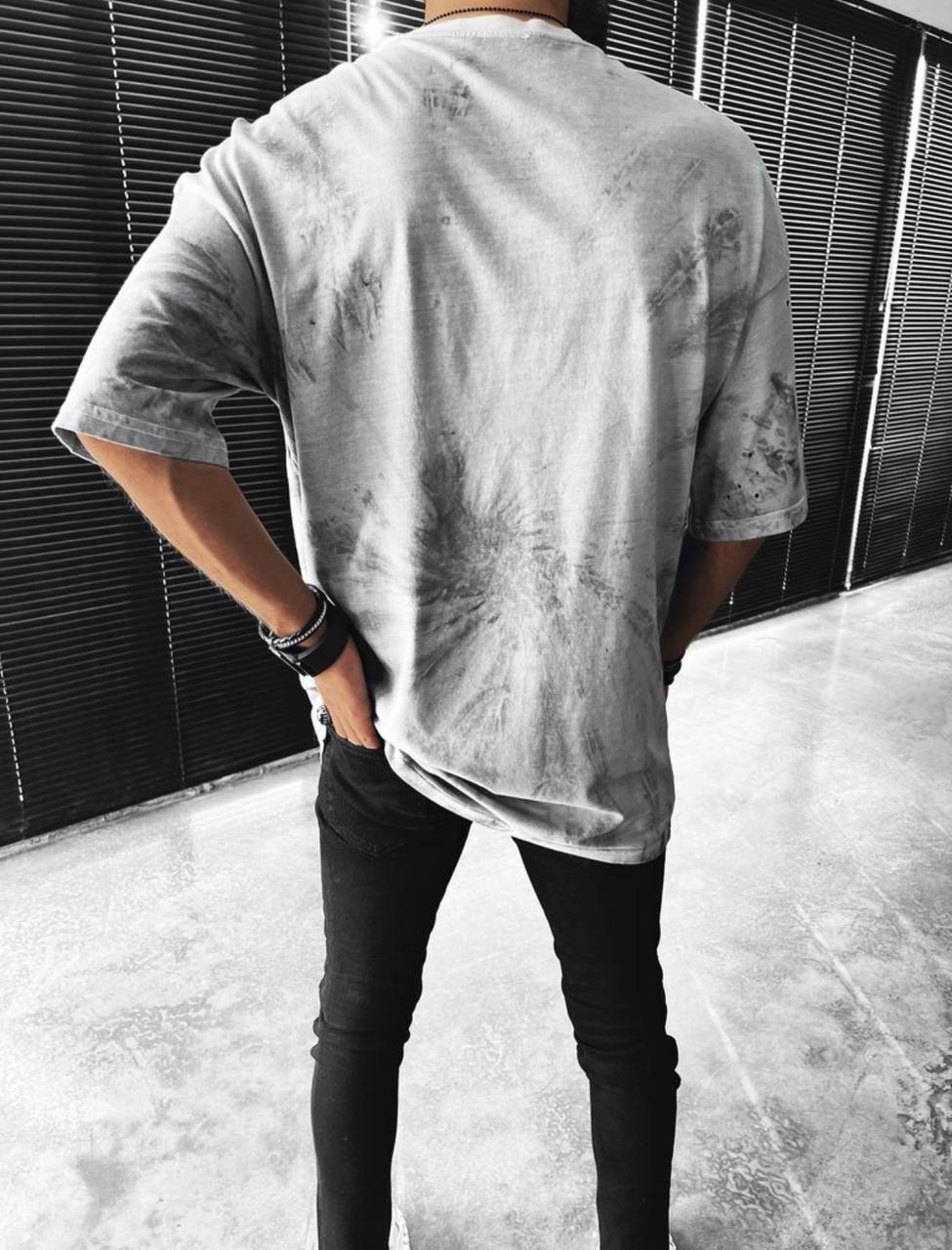 Мужская Футболка Оверсайз Серая – Удлиненная Свободного Кроя Хлопок в Необычной Расцветке с Надписью