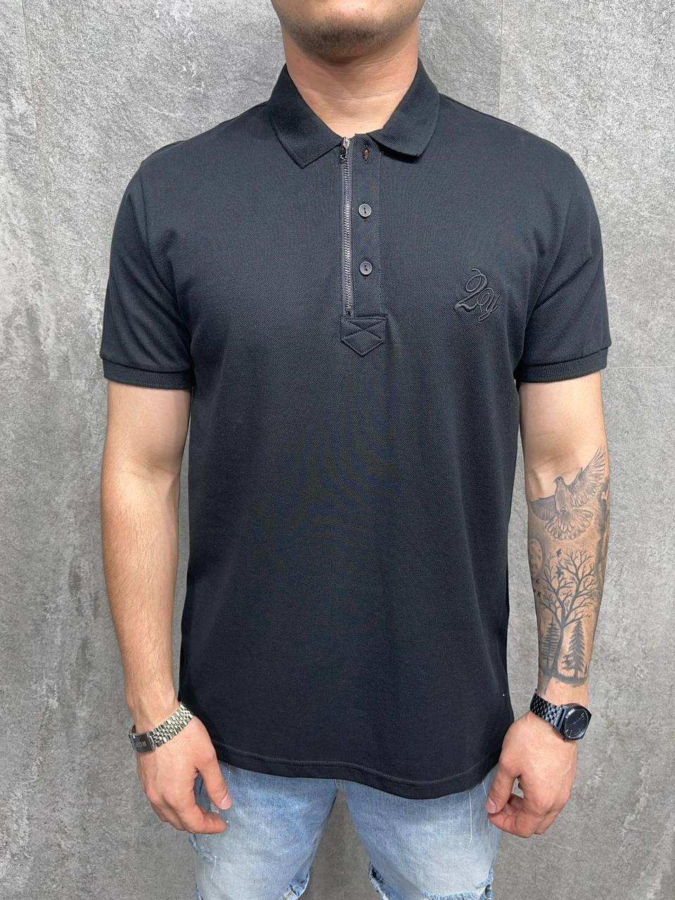 Мужская Футболка Поло Черная – с Воротником и Вышивкой