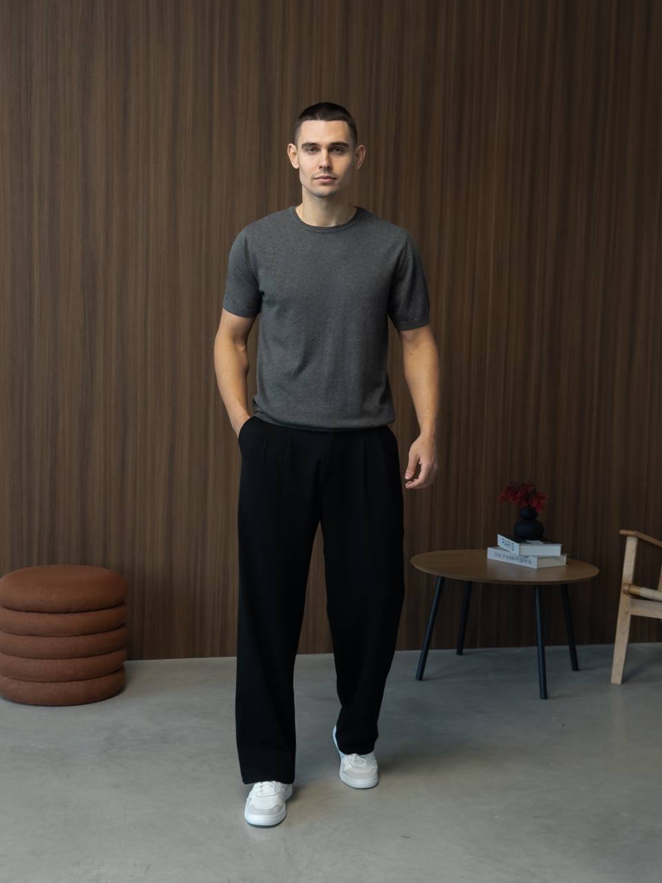 Мужская Графитовая Футболка – Базовая Хлопковая