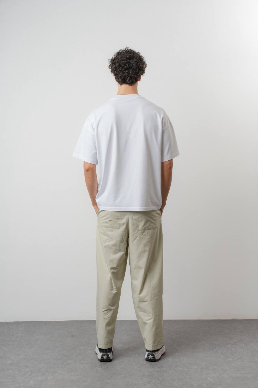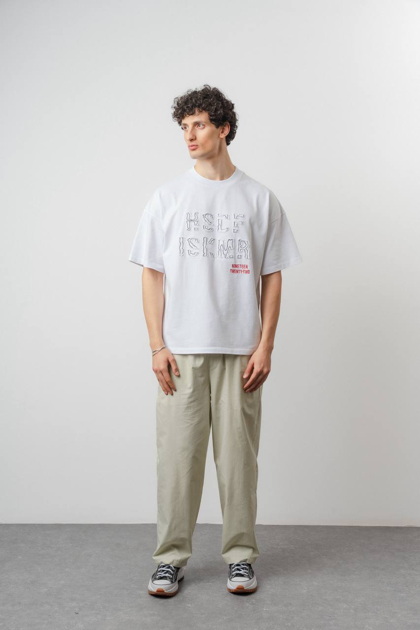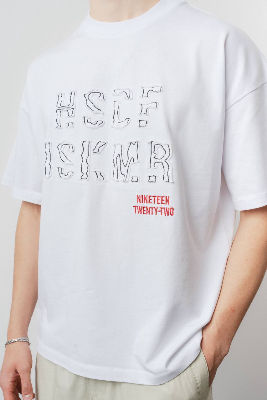 Мужская Хлопковая Белая Футболка Оверсайз с Нашитой Надписью