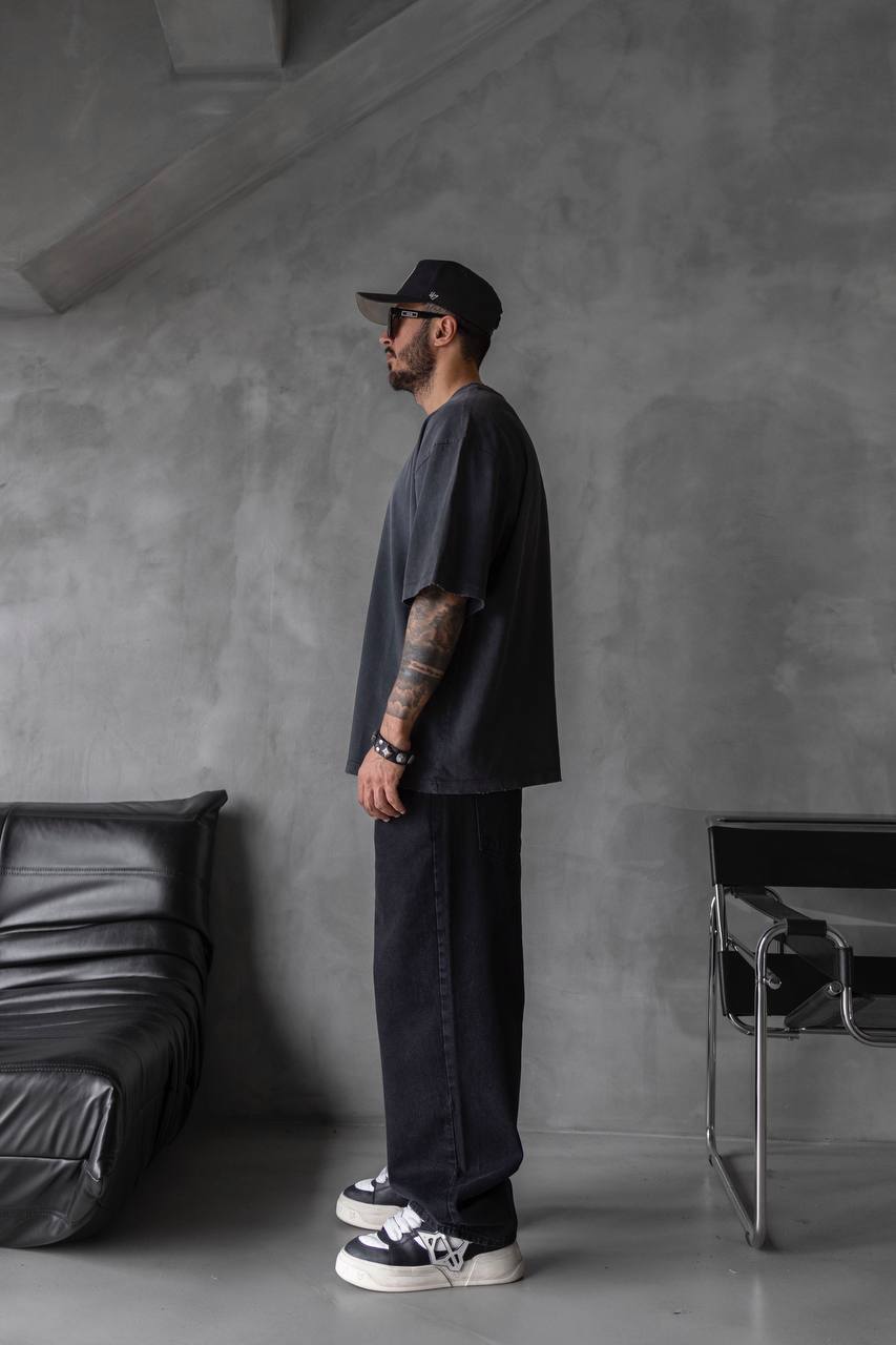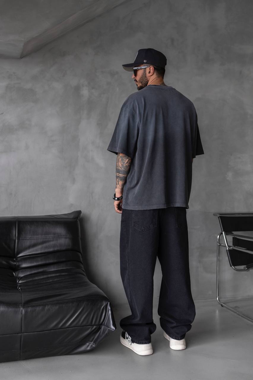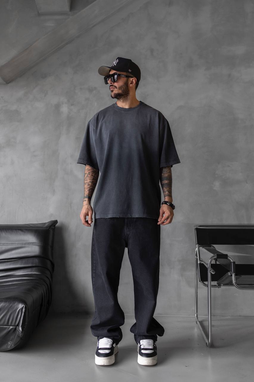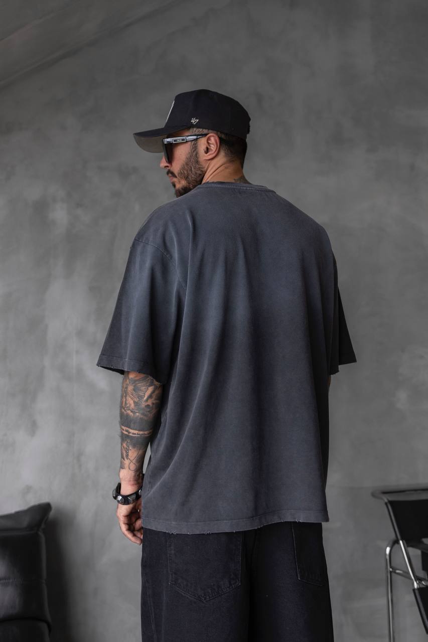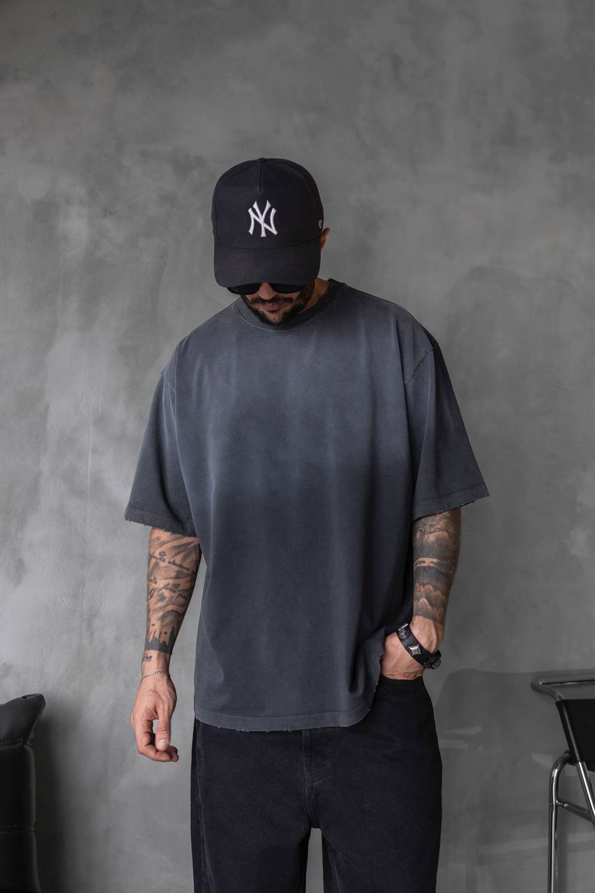 Мужская Хлопковая Футболка Оверсайз Антрацитового Цвета Варенка Градиент