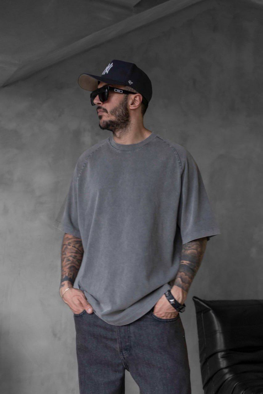 Мужская Хлопковая Футболка Варенка Темно-Серого Цвета Оверсайз