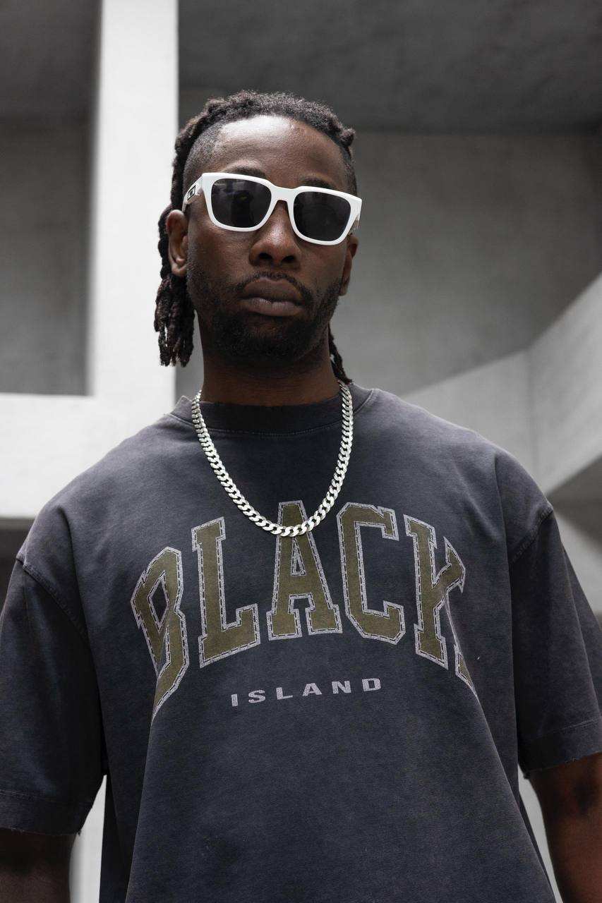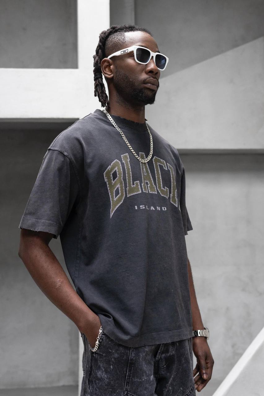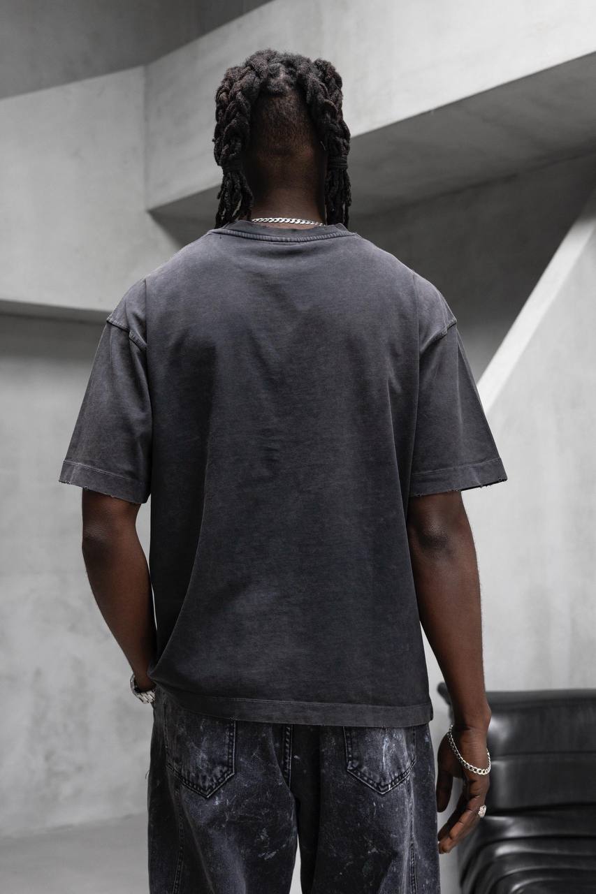 Мужская Хлопковая Графитовая Вареная Футболка Оверсайз с Надписью