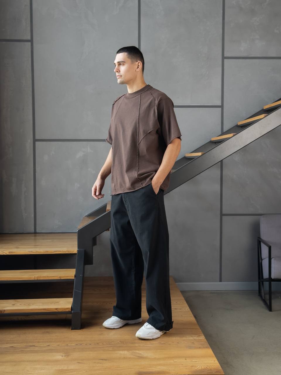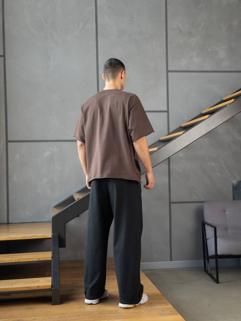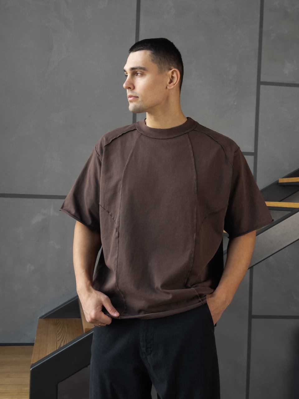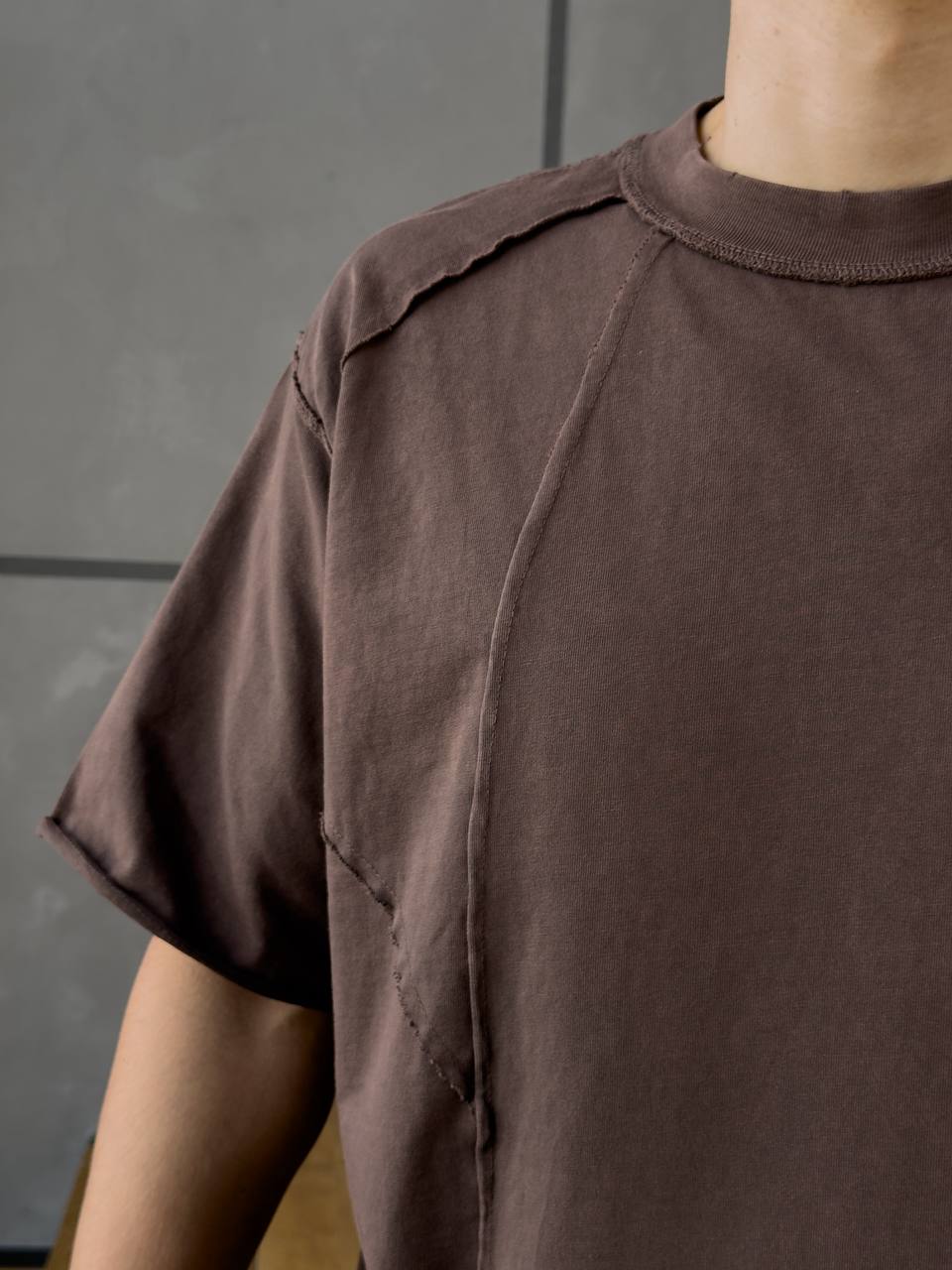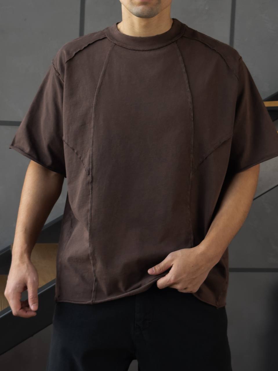 Мужская Хлопковая Коричневая Футболка Оверсайз – Объемная со Швами Наружу