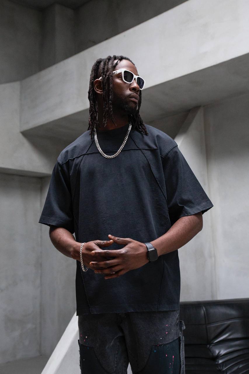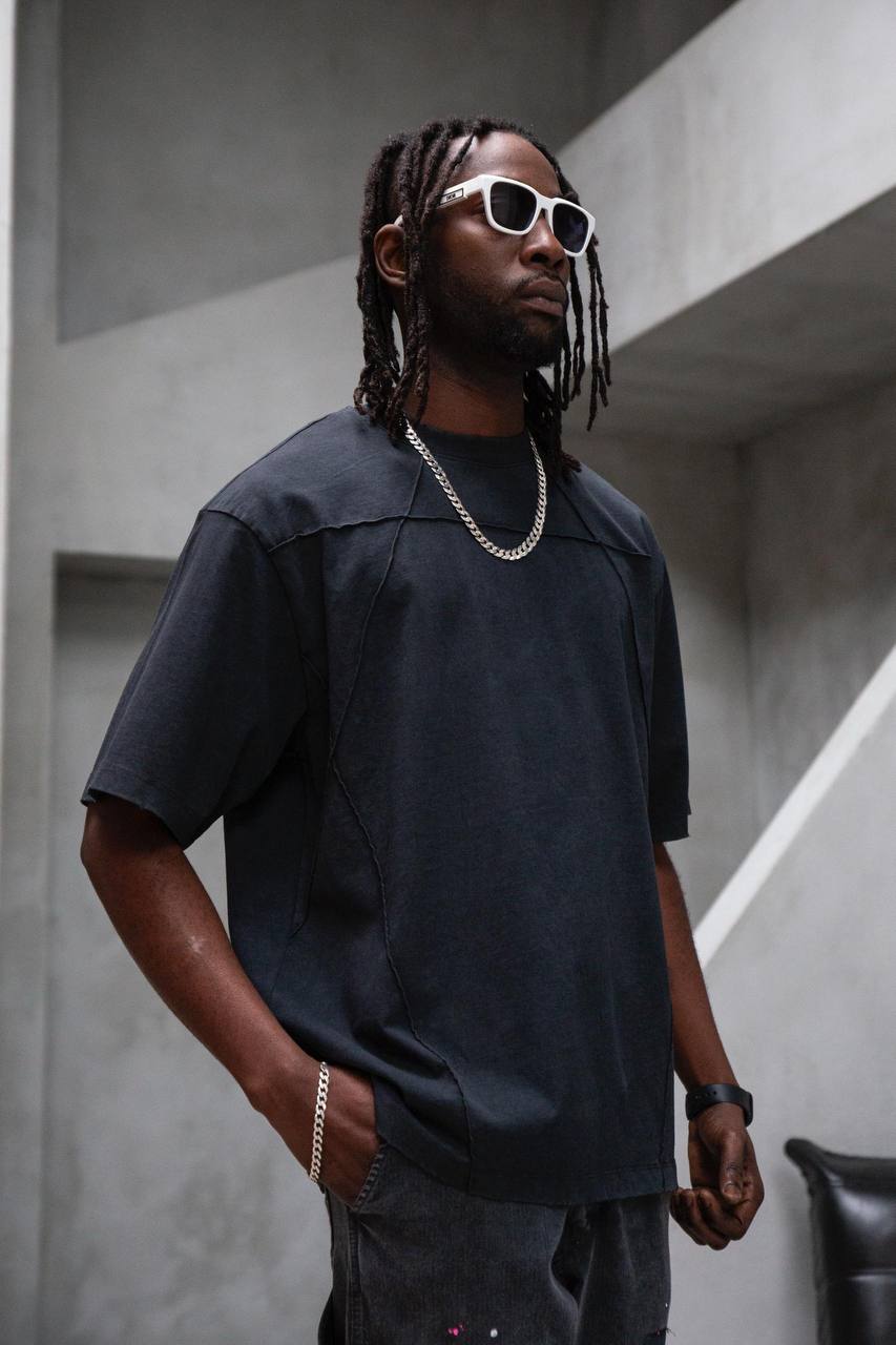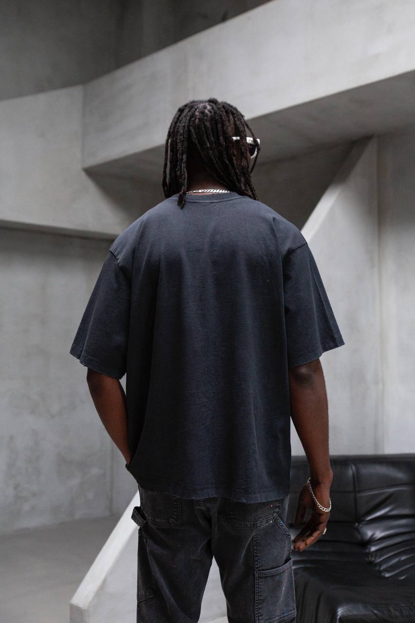 Мужская Хлопковая Вареная Графитовая Футболка Оверсайз – Объемная с Потертостями