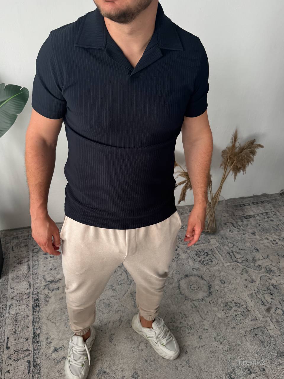 Мужская Классическая Графитовая Футболка Поло в Рубчик с Воротником