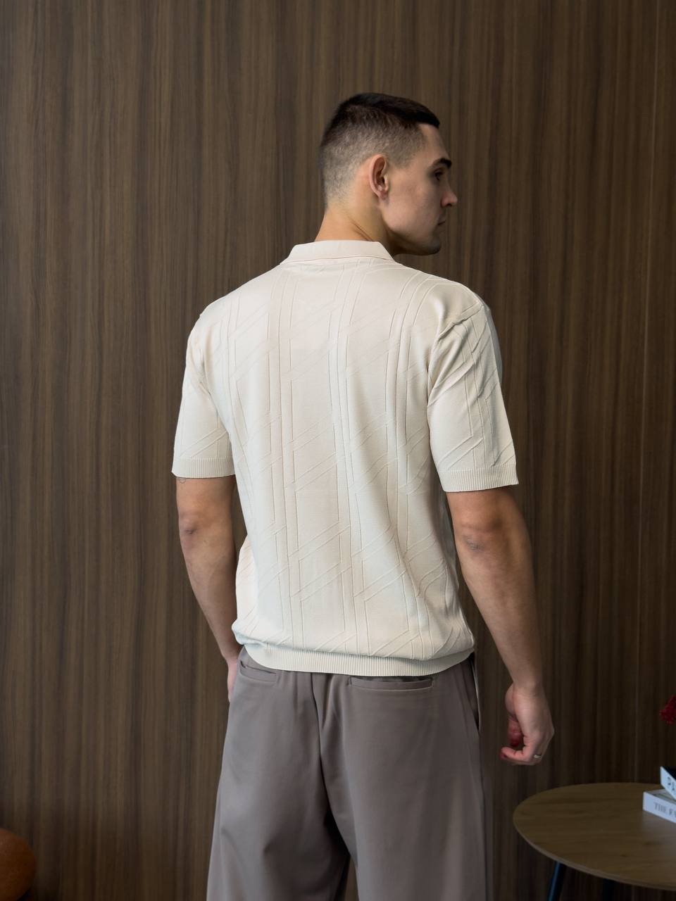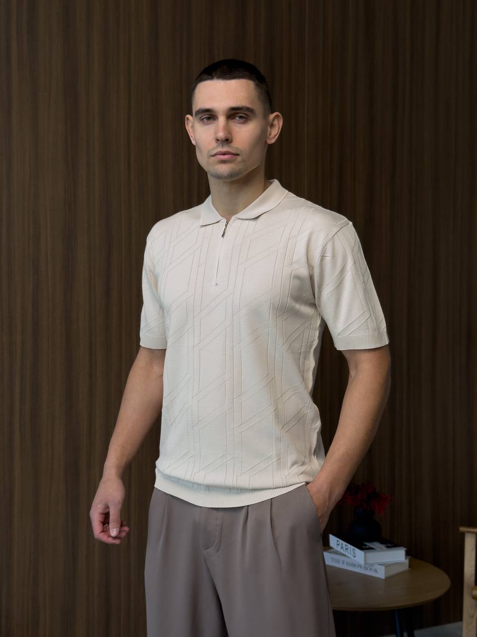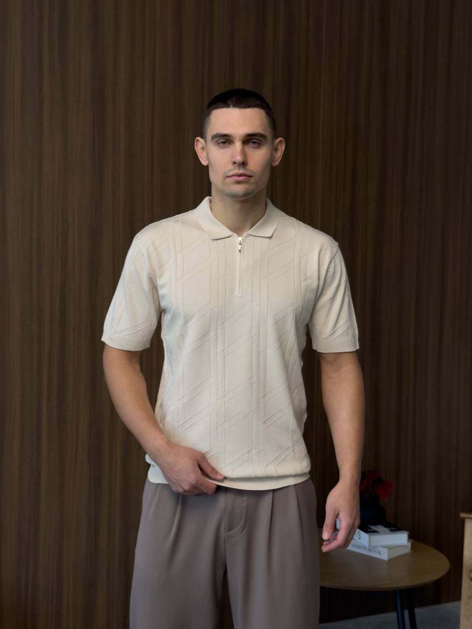Мужская Классическая Трикотажная Кремовая Футболка с Воротником Поло на Замке