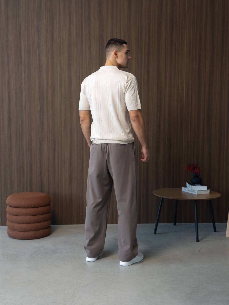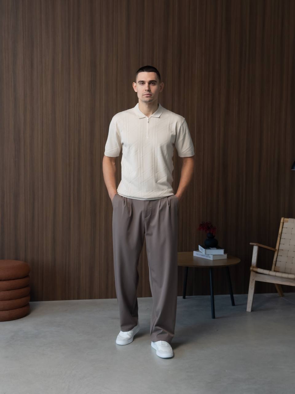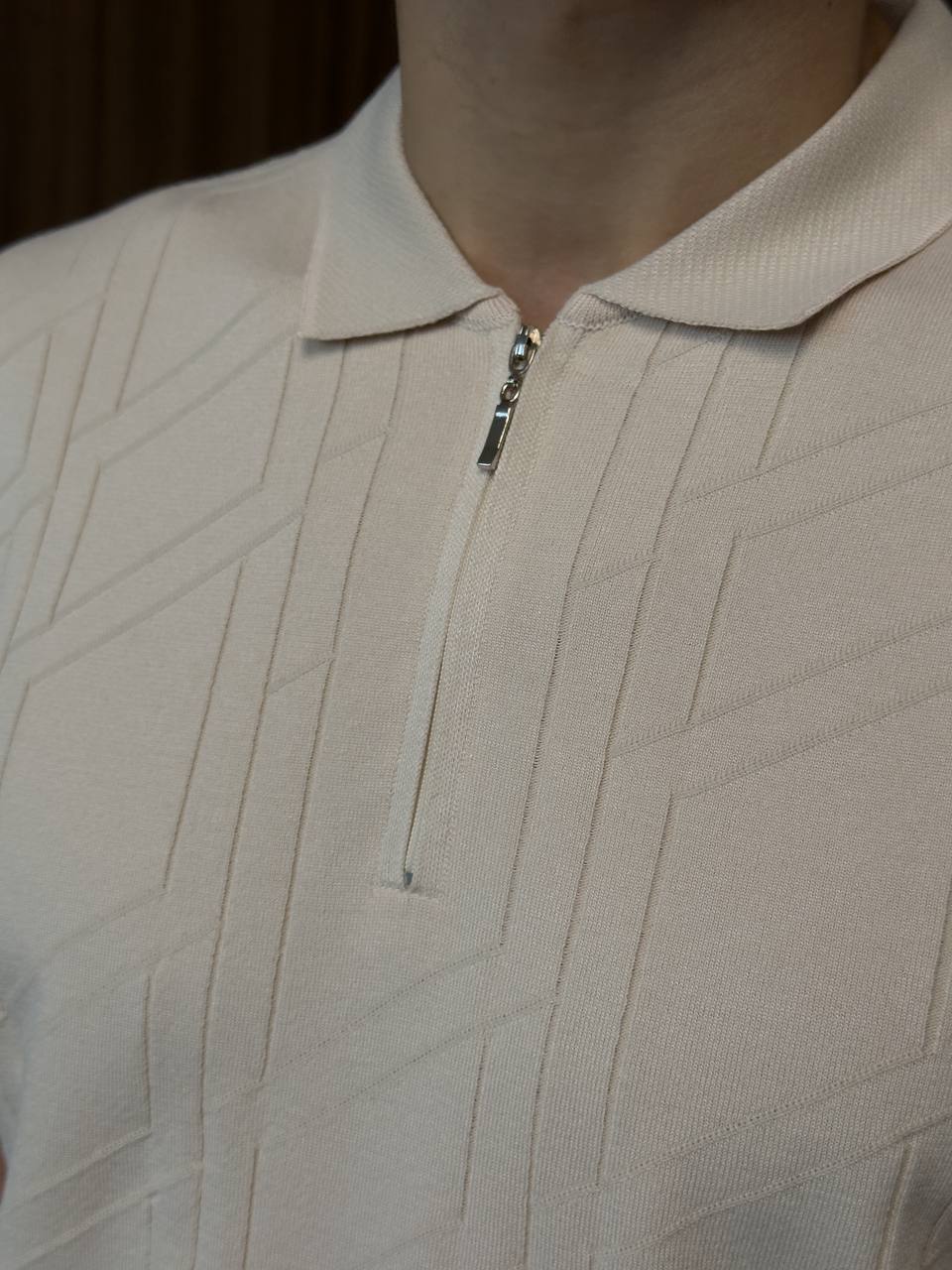 Мужская Классическая Трикотажная Кремовая Футболка с Воротником Поло на Замке