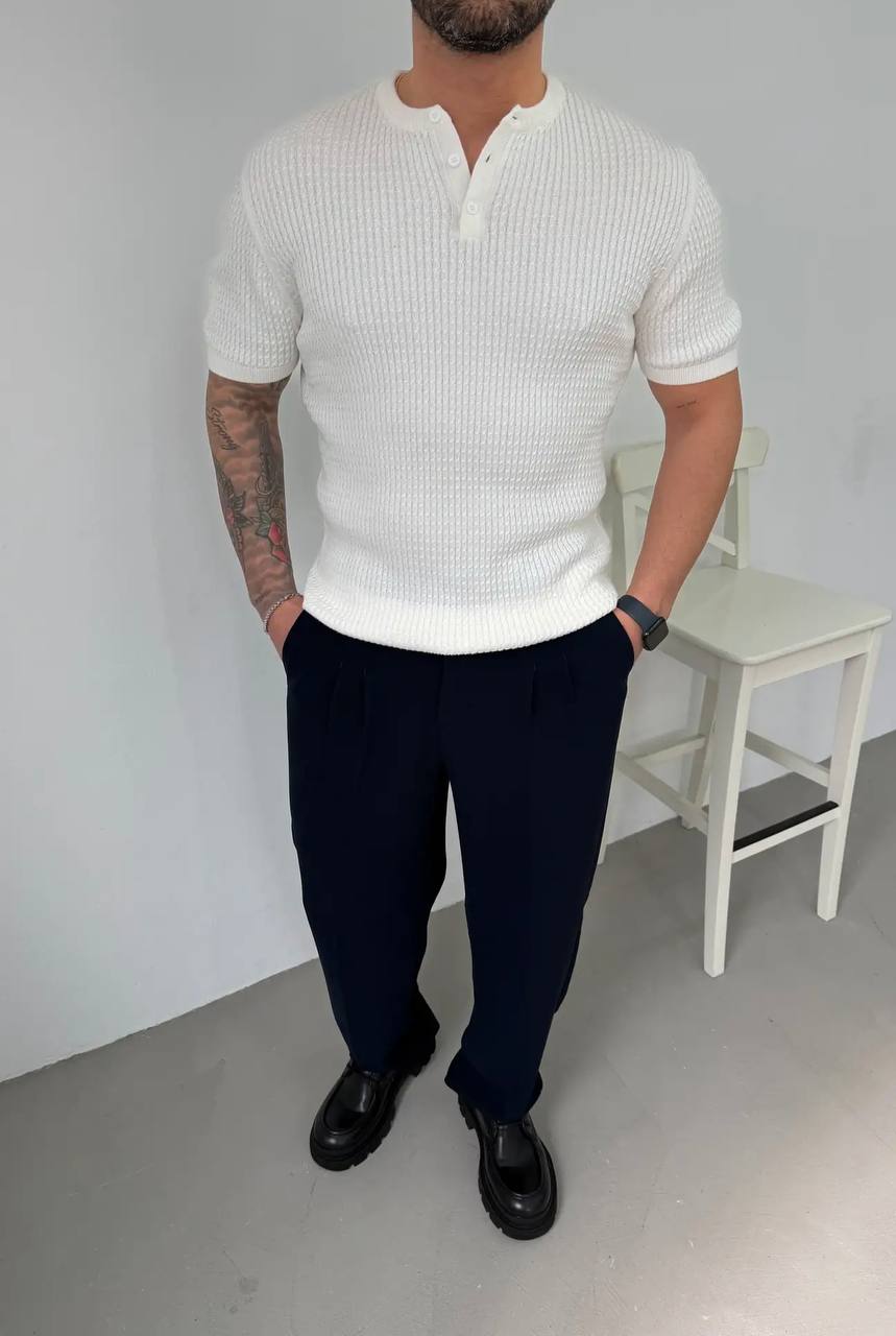 Мужская Классическая Вязаная Белая Футболка в Стиле Old Money