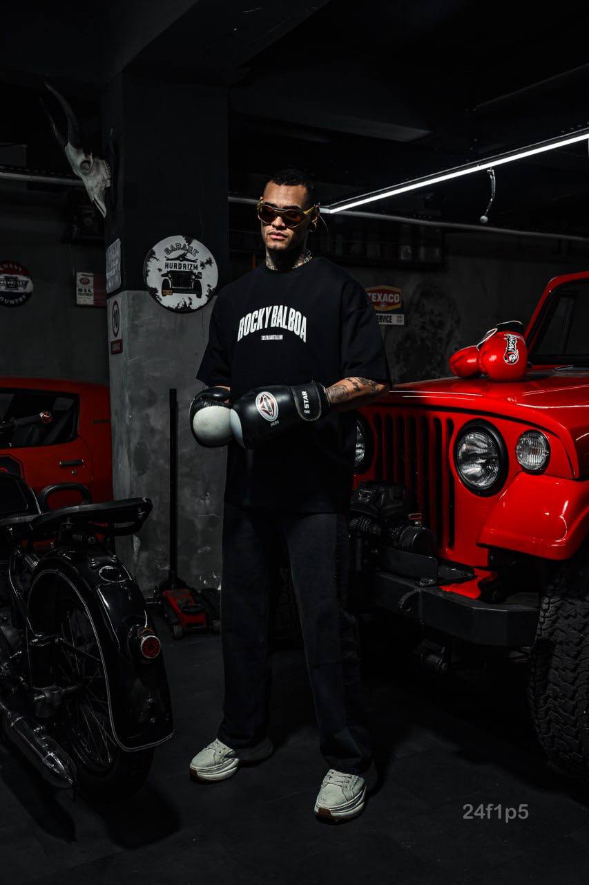 Мужская Объемная Хлопковая Черная Футболка Оверсайз с Надписью на Спине