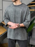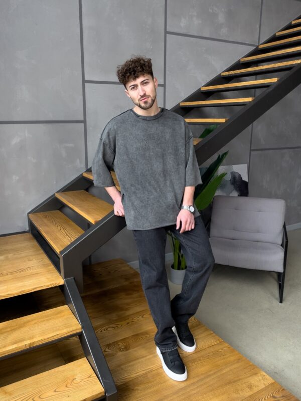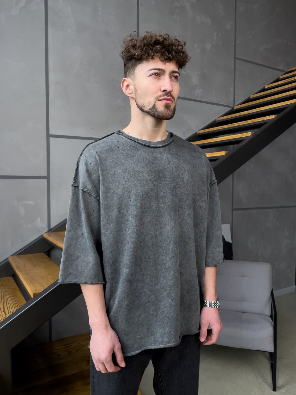 Мужская Объемная Темно-Серая Футболка Варенка – Рваная со Швами Наружу