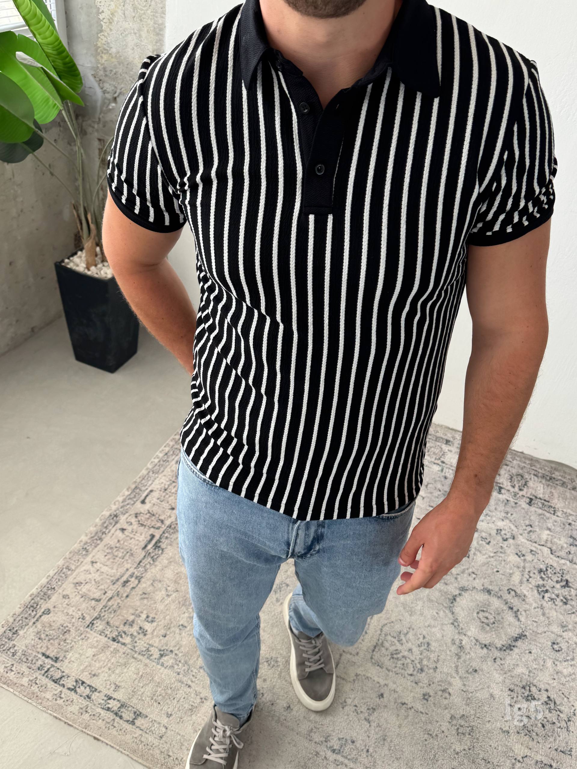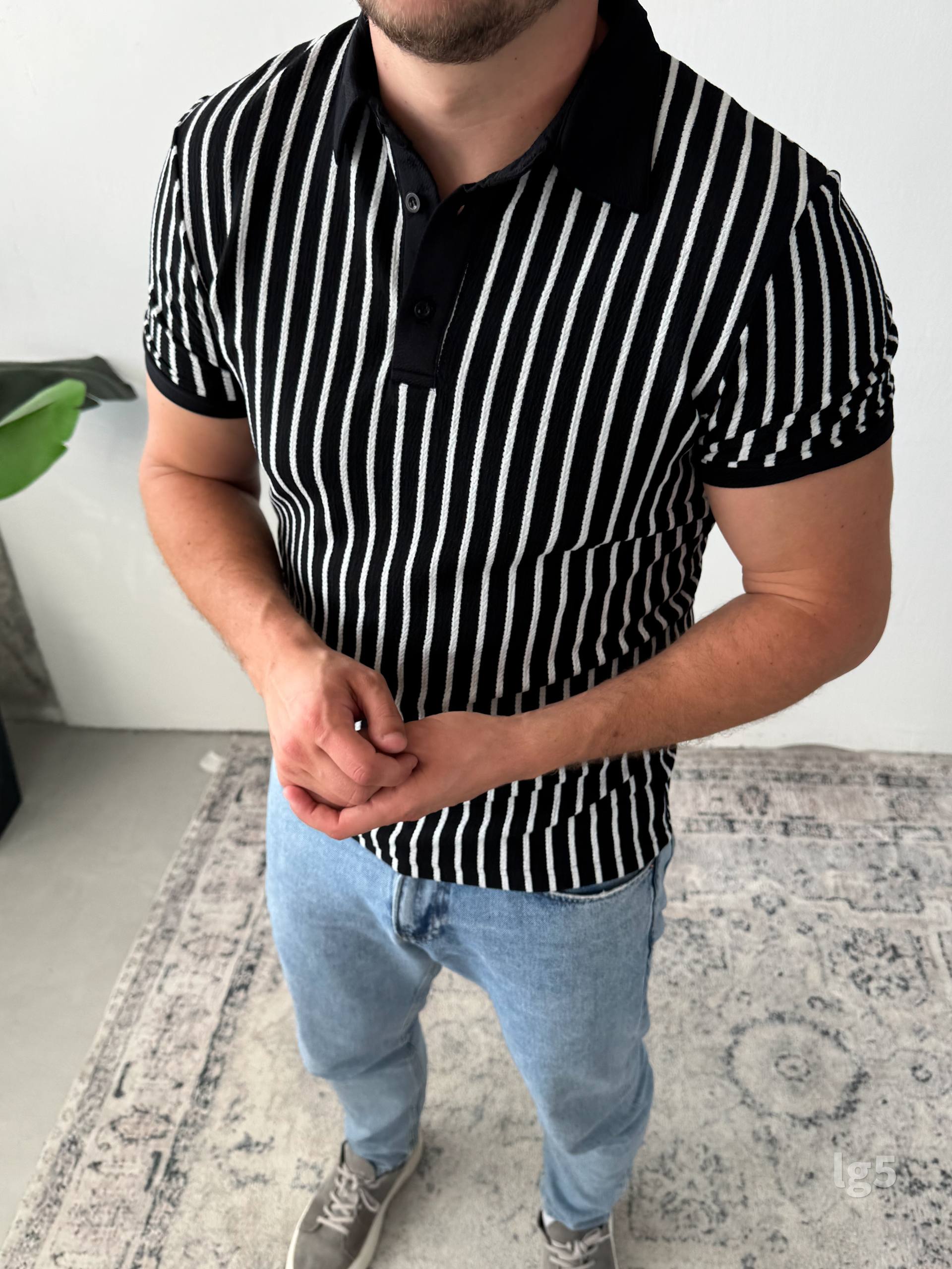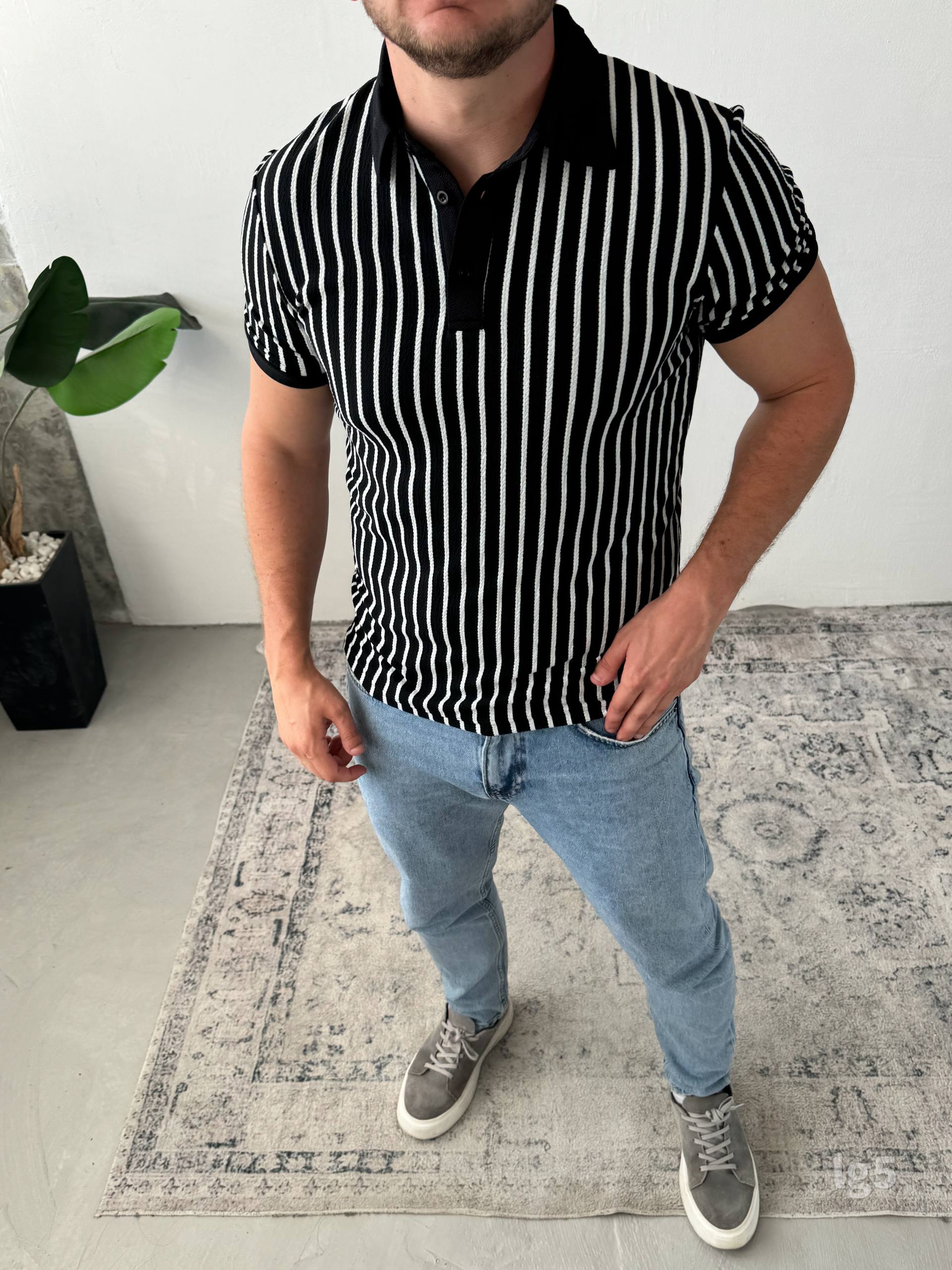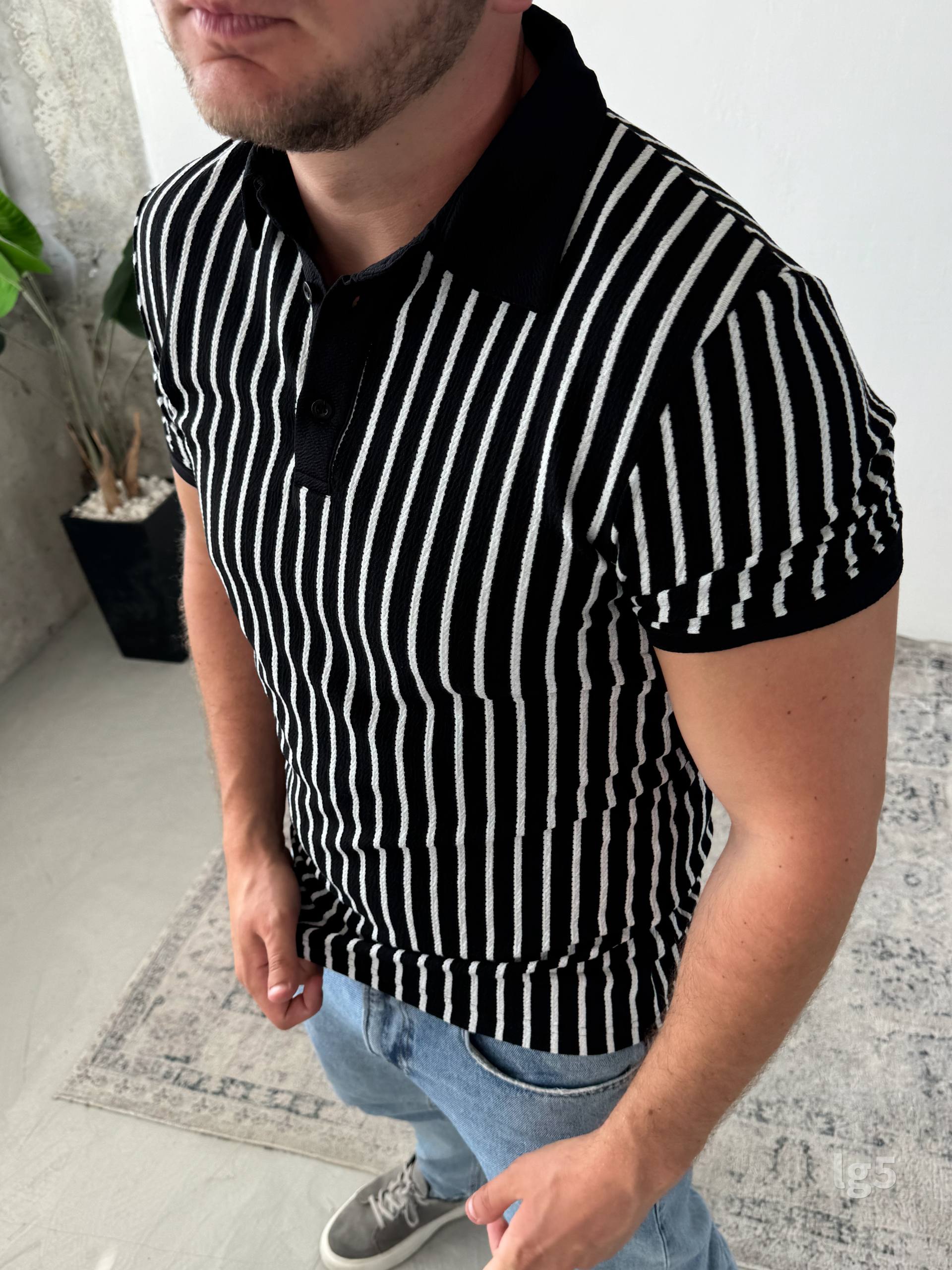 Мужская Полосатая Черная Футболка Поло – Классическая с Воротником