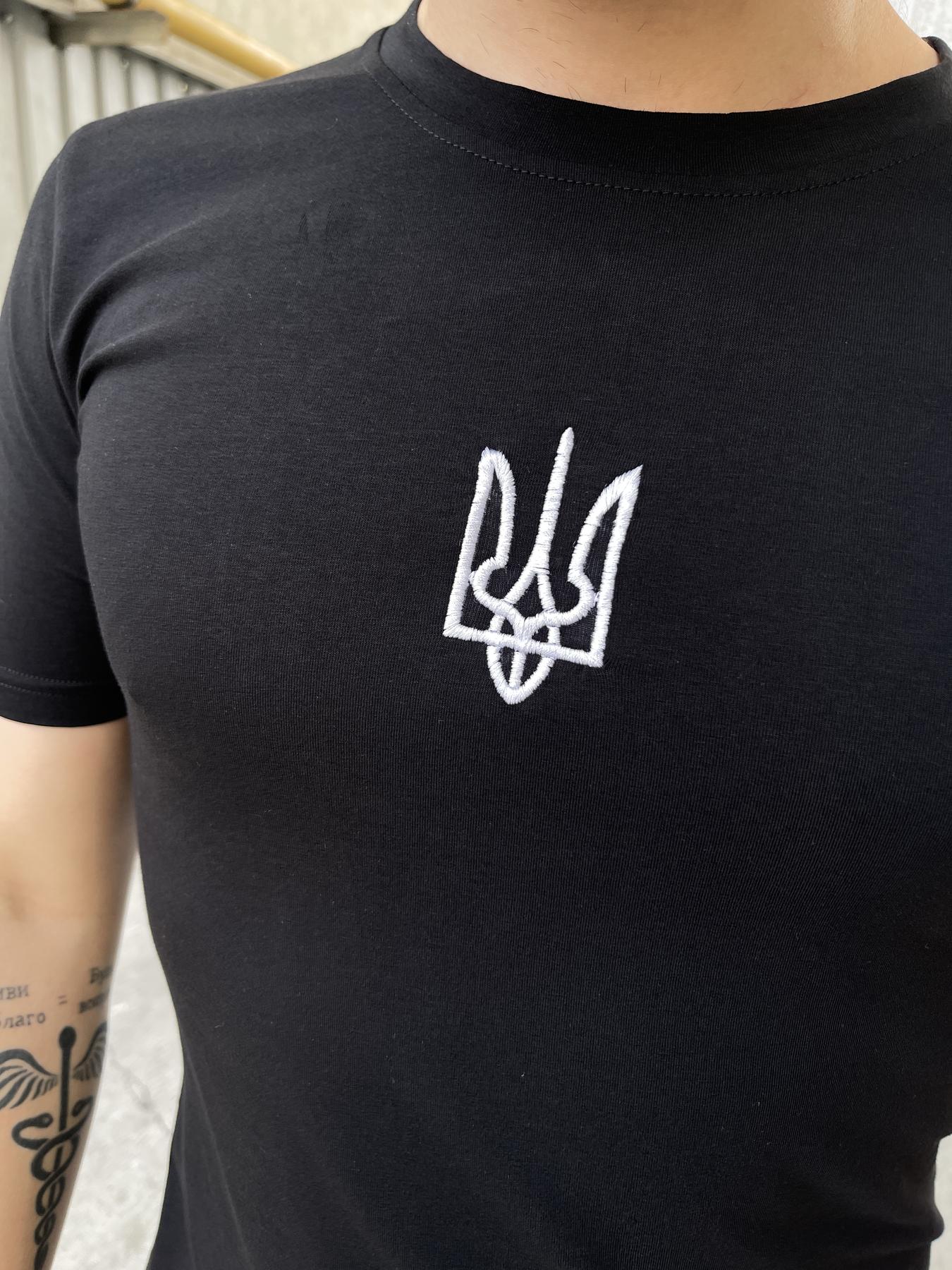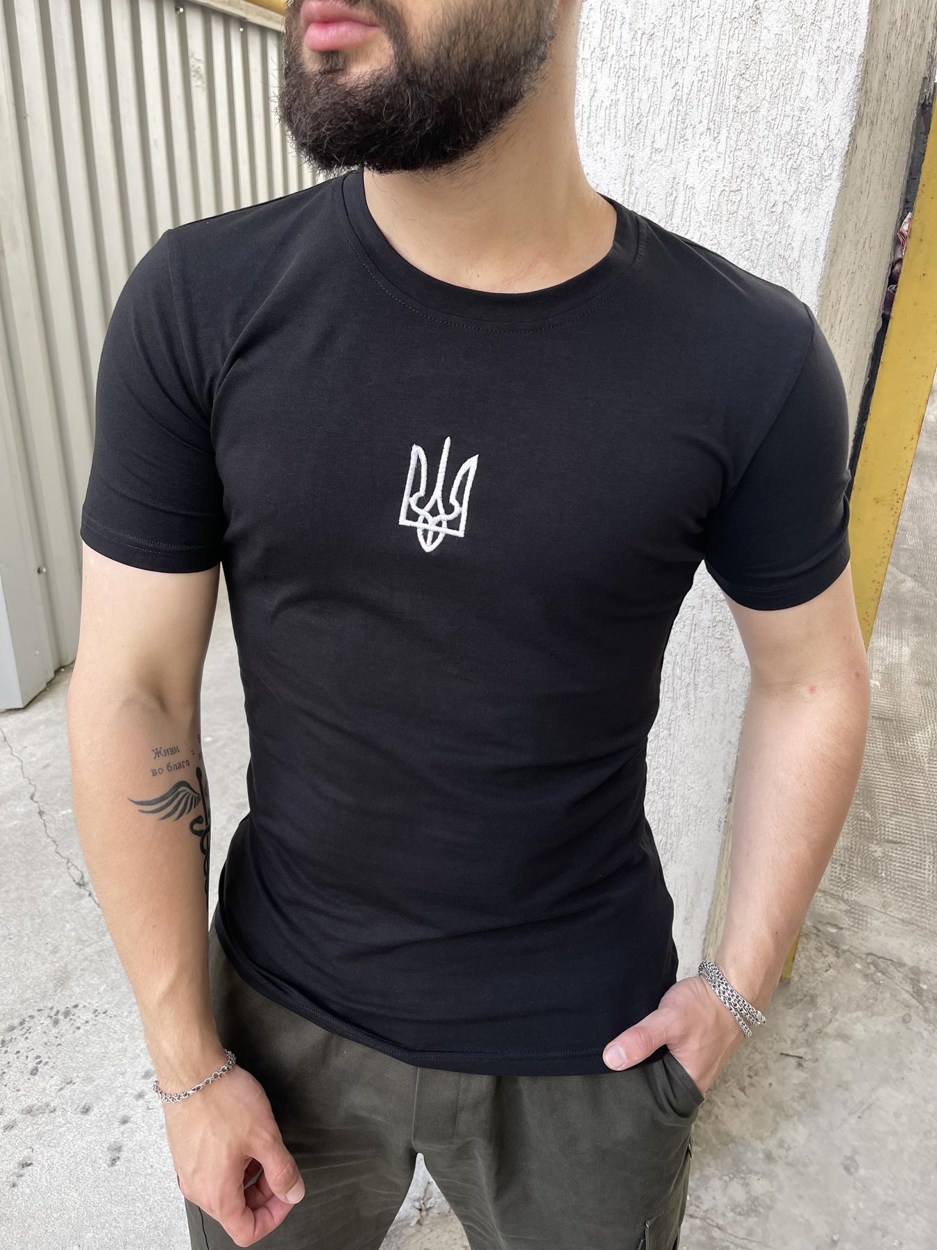 Мужская Приталенная Черная Футболка с Круглым Вырезом и Вышитым Тризубом
