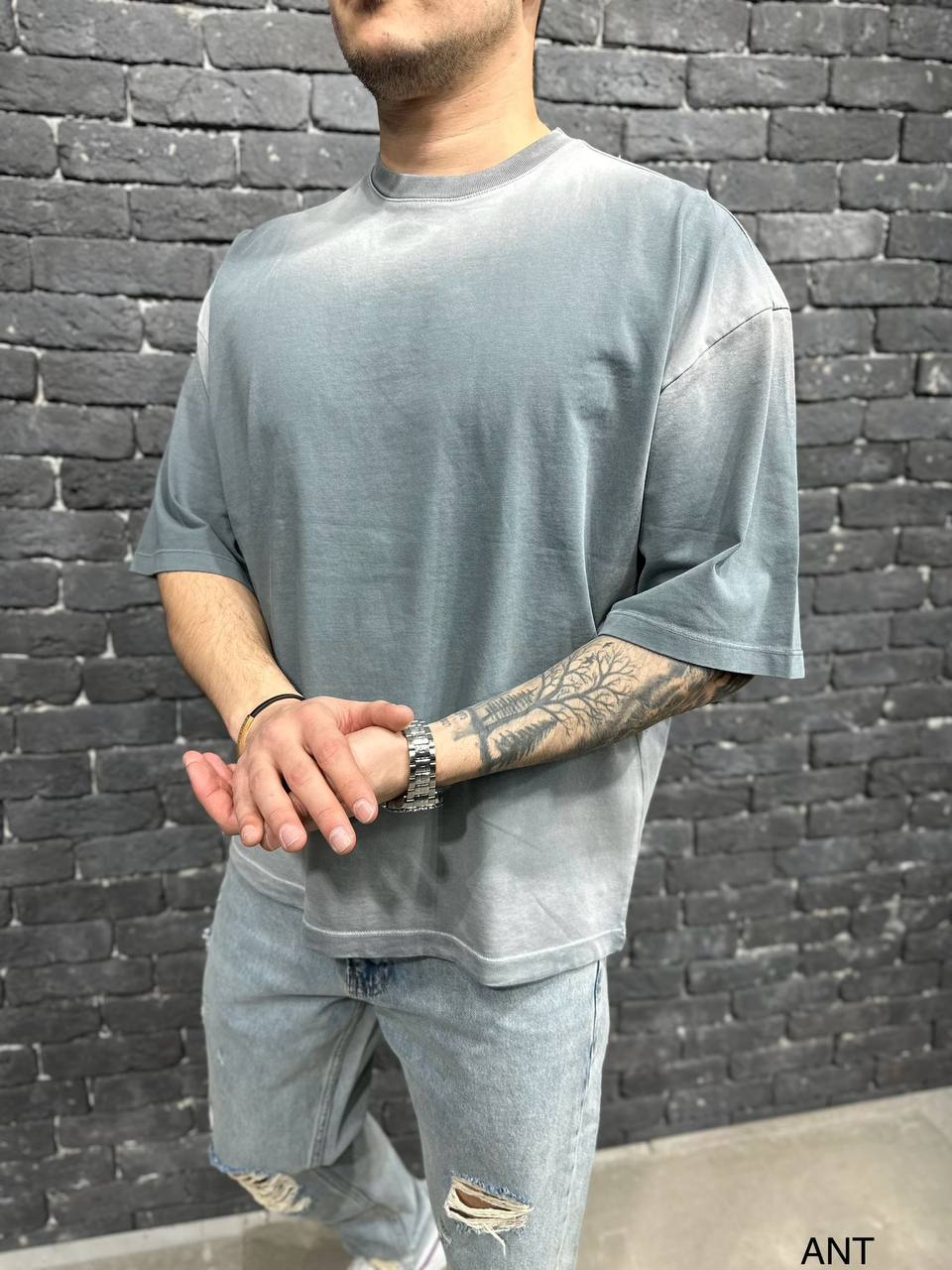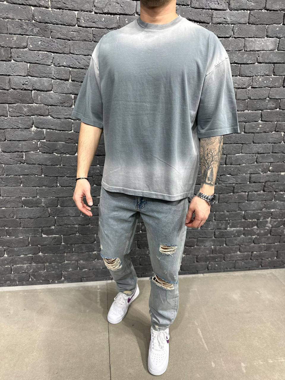 Мужская Серая Футболка Оверсайз Градиент – Свободная Хлопковая на Лето