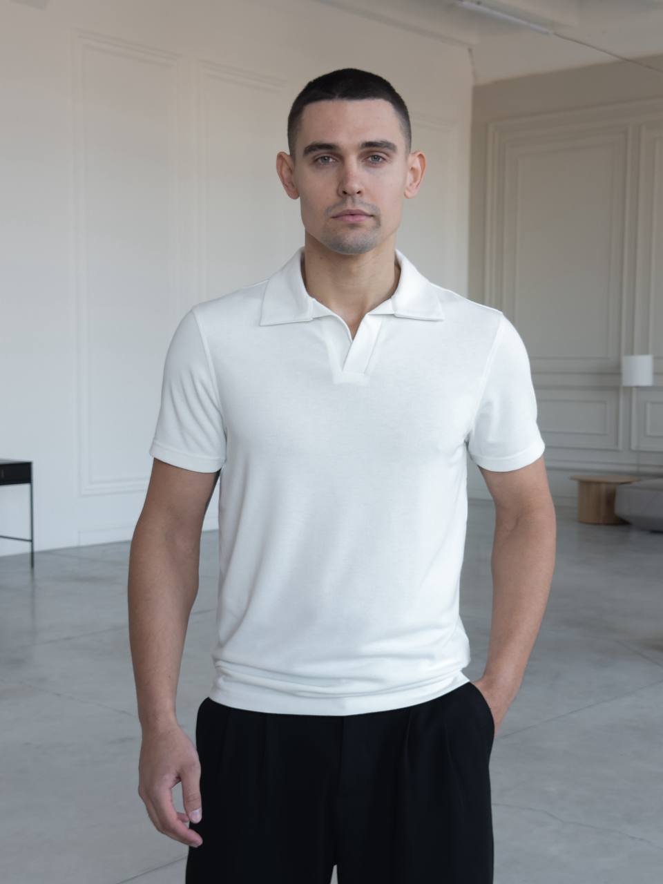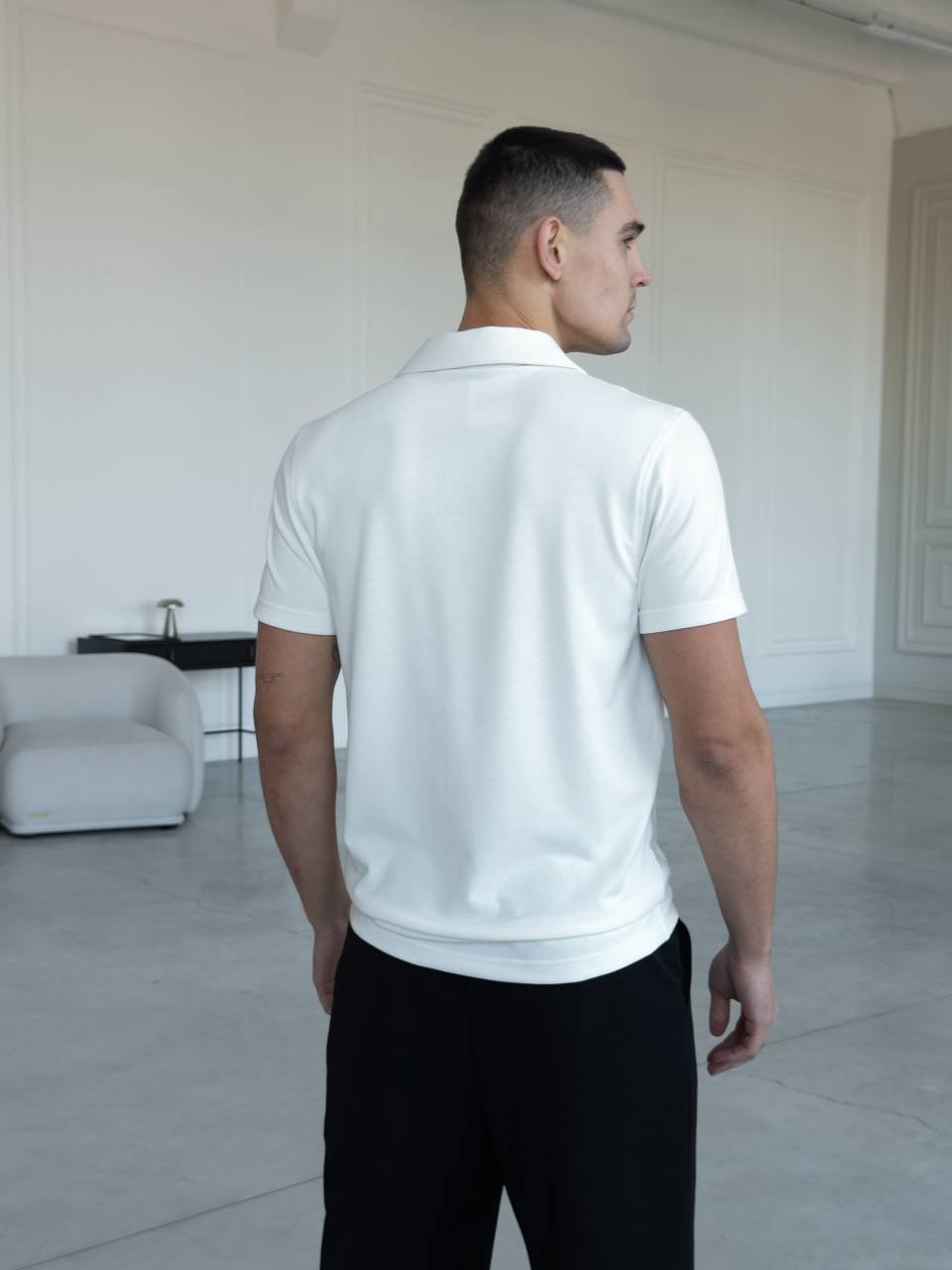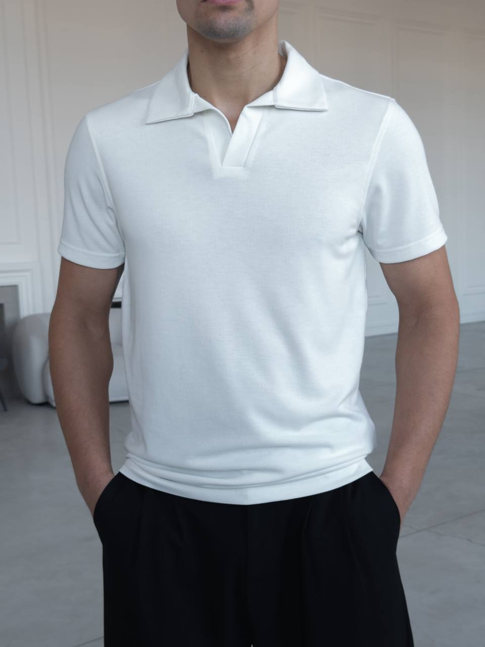 Мужская Трикотажная Белая Классическая Футболка Поло с Воротником