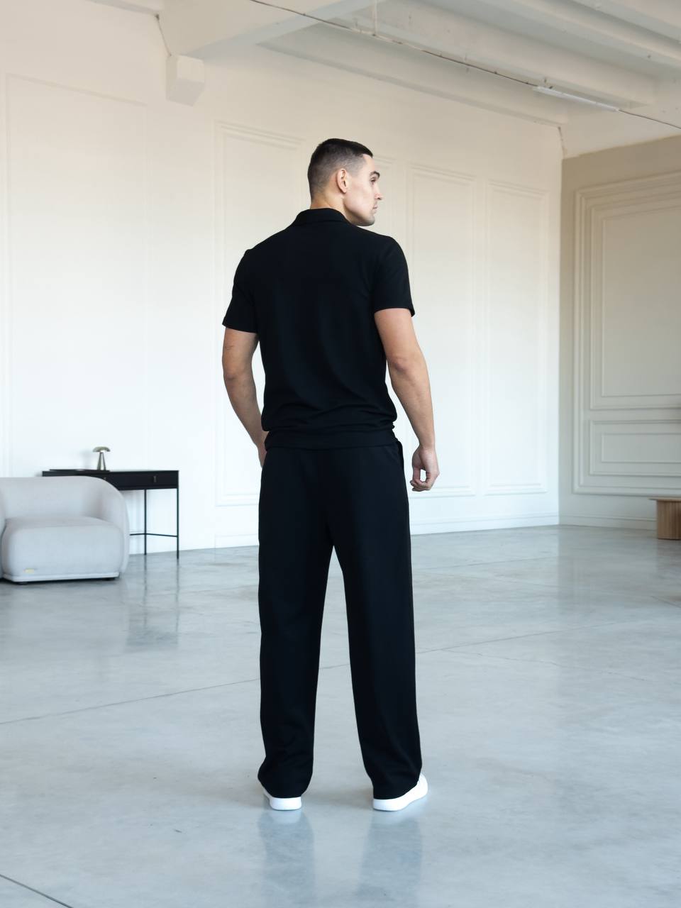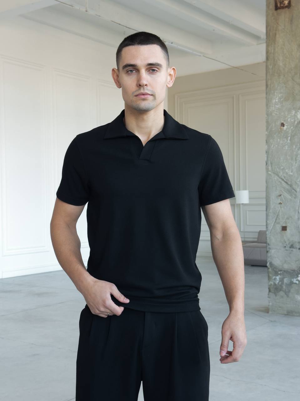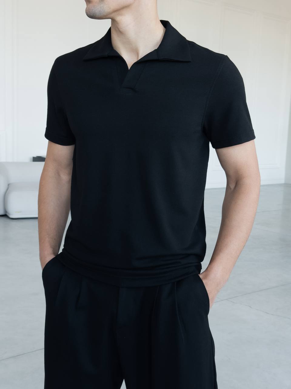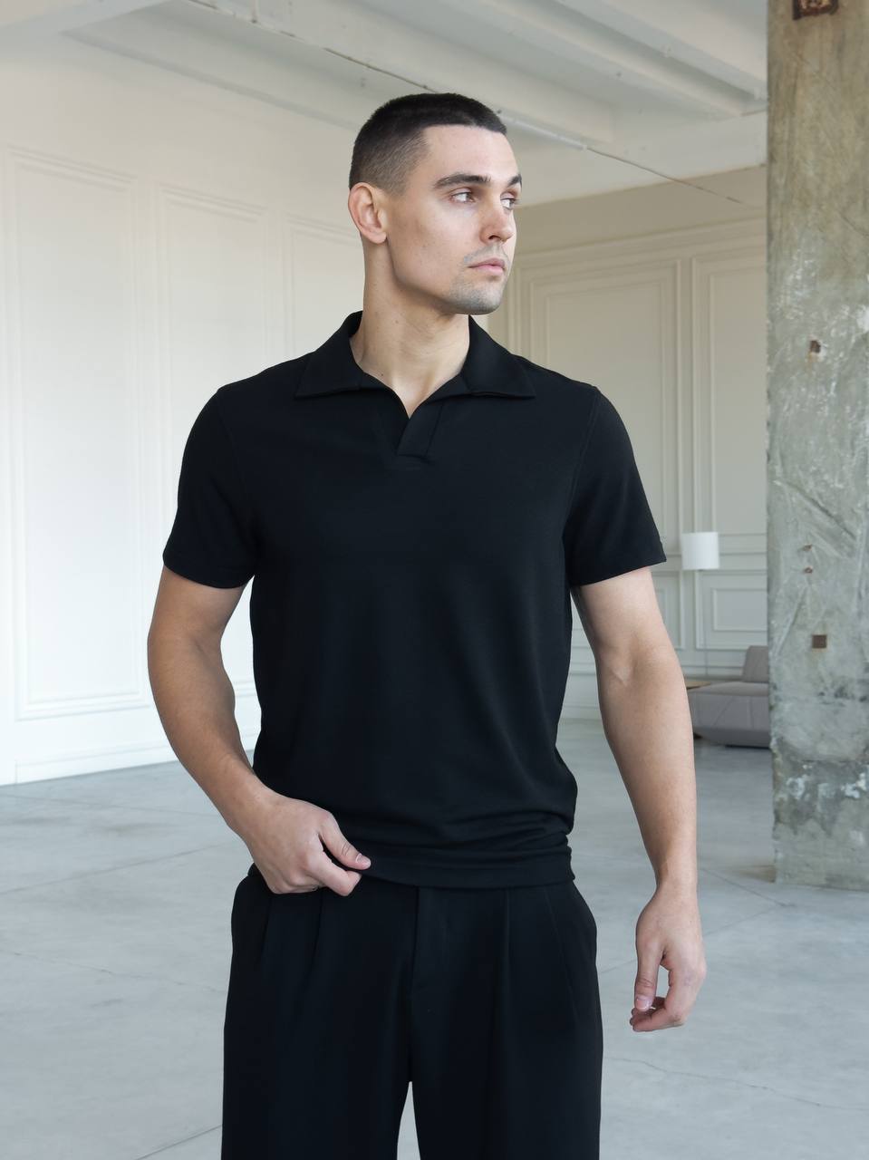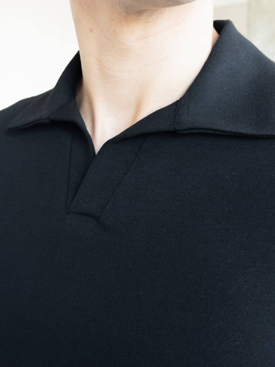 Мужская Трикотажная Черная Классическая Футболка Поло с Воротником