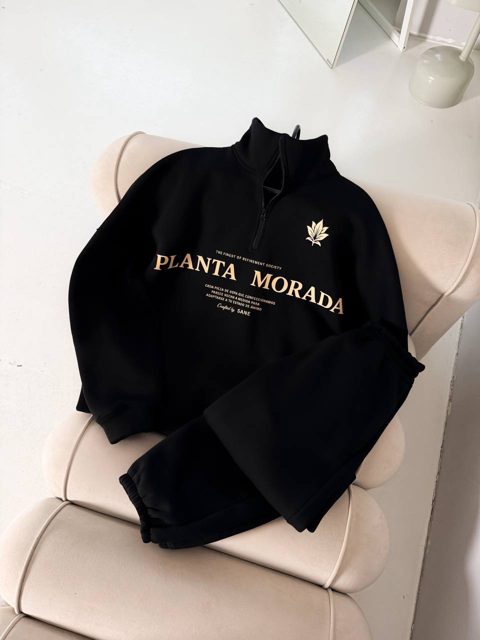 Мужская Черная Кофта “Planta Morada” под Горло с Коротким Замком – Теплая с Начесом