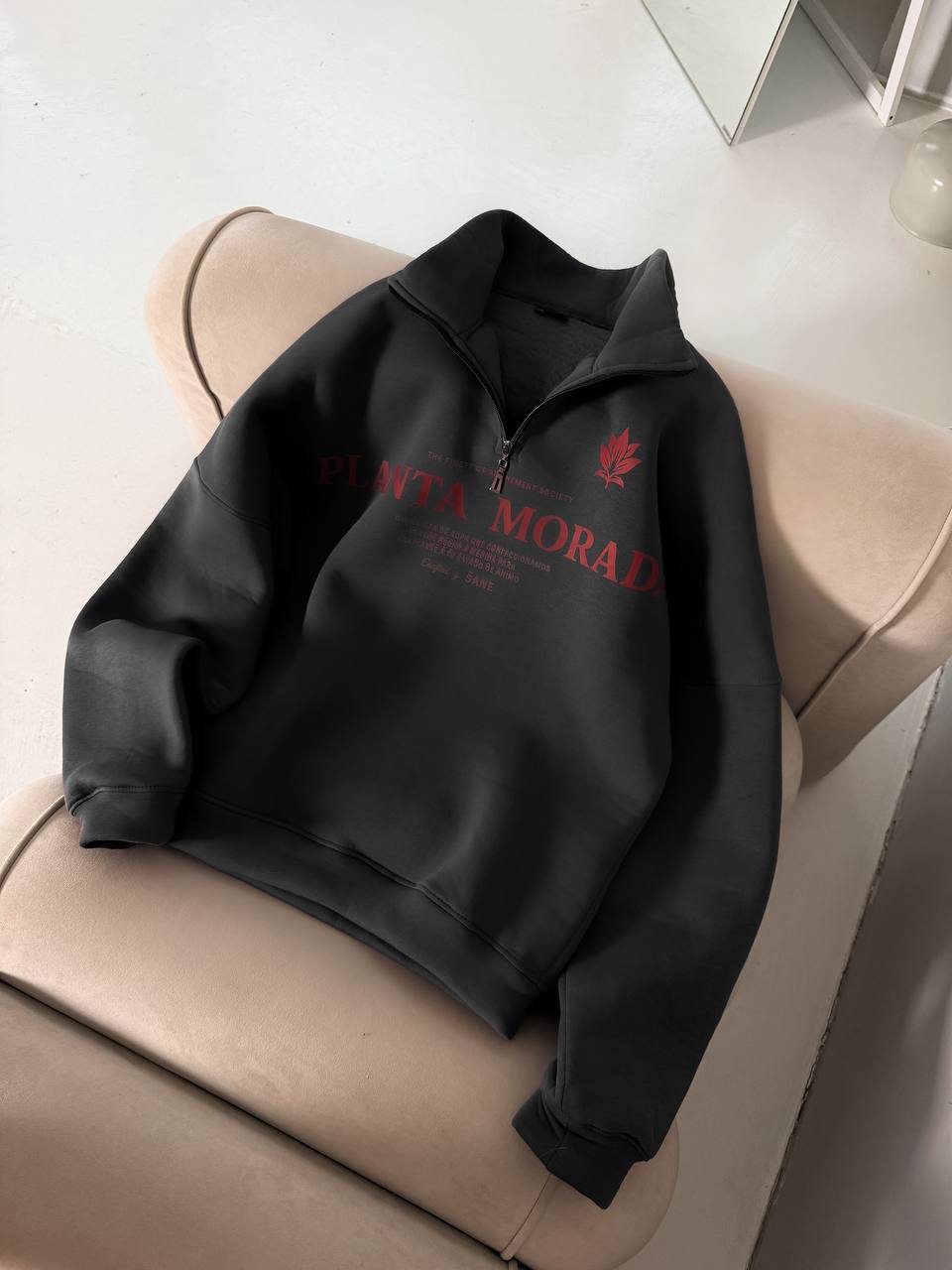 Мужская Графитовая Кофта “Planta Morada” под Горло с Коротким Замком – Теплая с Начесом