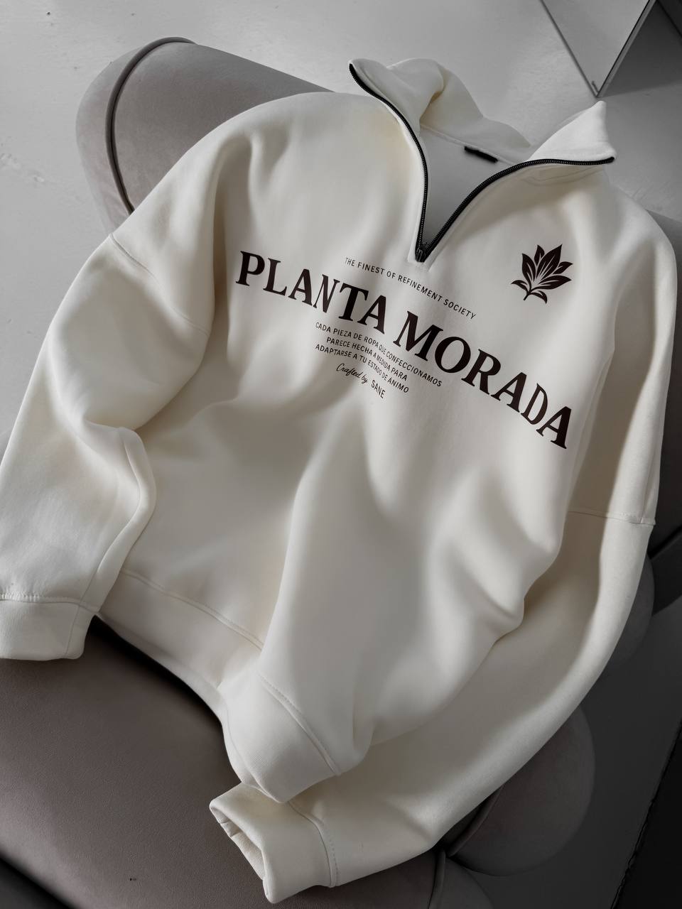 Мужская Молочная Кофта “Planta Morada” под Горло с Коротким Замком – Теплая с Начесом