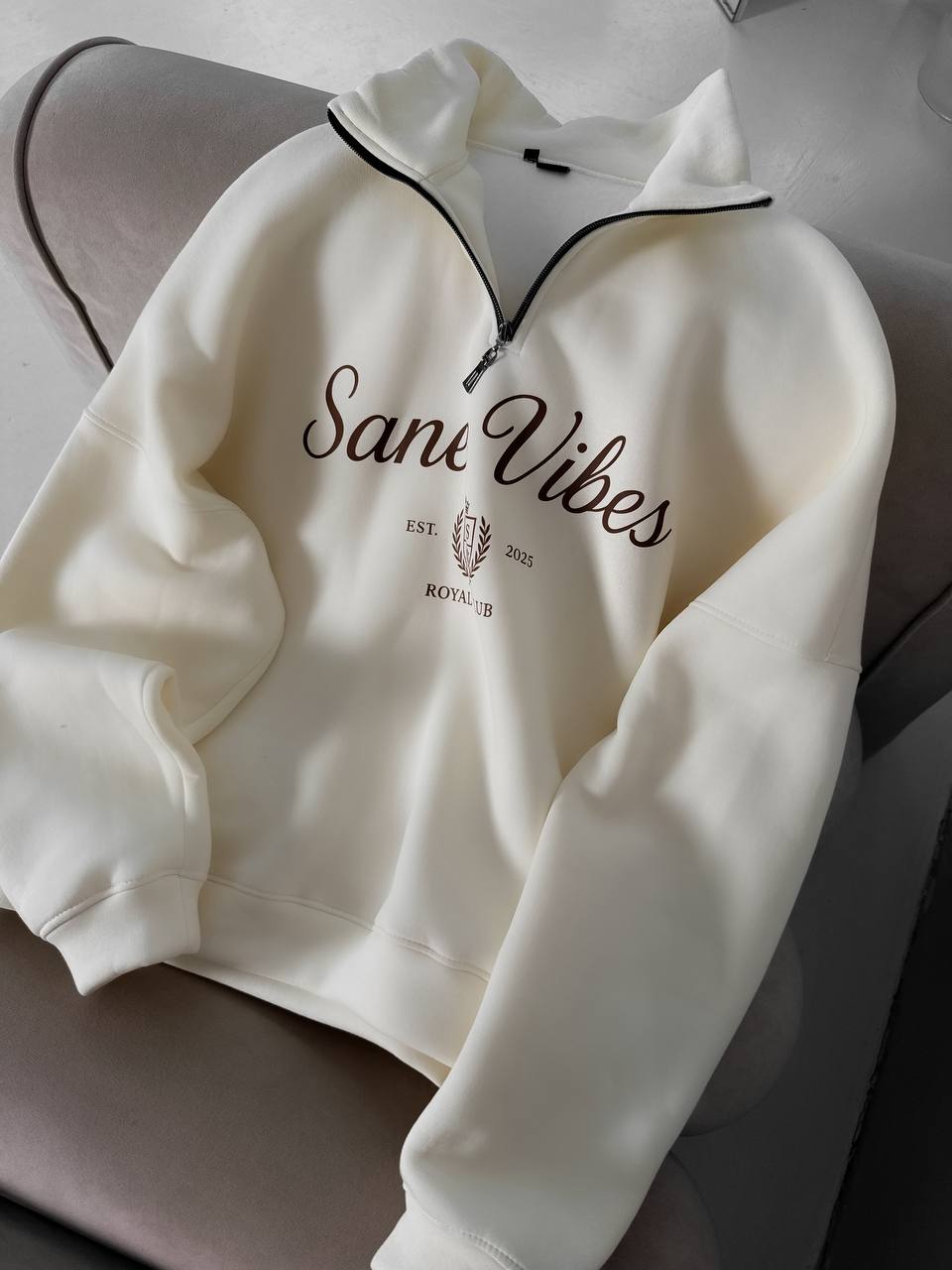 Мужская Молочная Кофта “Sane Vibes” с Коротким Замком под Горло – Теплая с Начесом