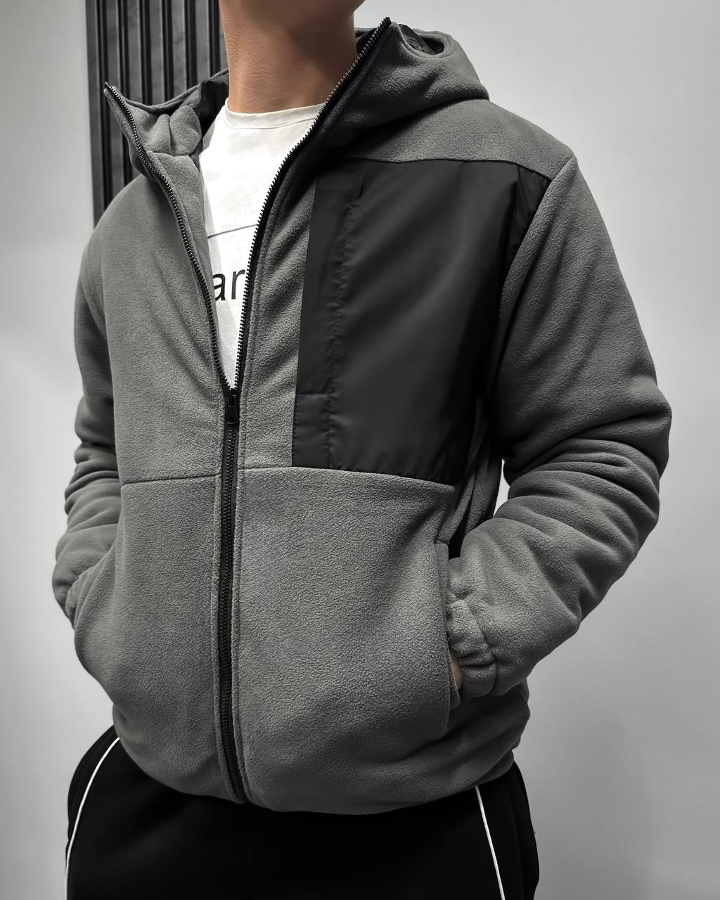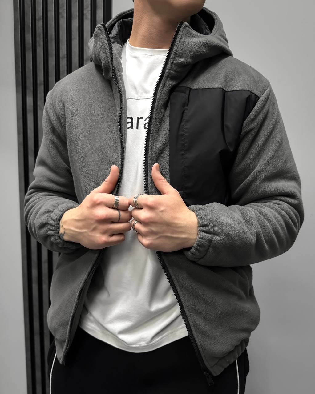 Мужская Теплая Флисовая Темно-Серая Кофта с Капюшоном – Свободная Флиска на Молнии